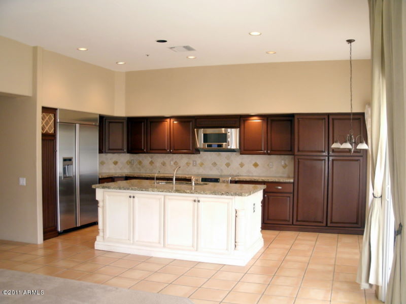 Home backs to wash and mountain VIEWS! Art niches, soaring ceilings, wood beams in formal dining room ceiling! Large windows and glass doors open to the covered patio to FEATURE the beautiful backyard. Backs to wash with mountains in distance! Upgraded kitchen.Granite countertops, Stainless steel Kitchen aide appliances, tumbled Travertine backsplash, and large island great for entertaining! Family room with stacked stone fireplace,large master bedroom with wall of windows! Double sinks & shower heads! Special Rubber mulch children’s play area outside, and more!