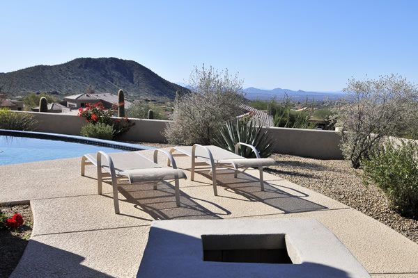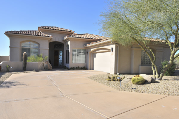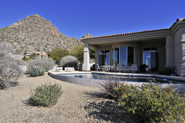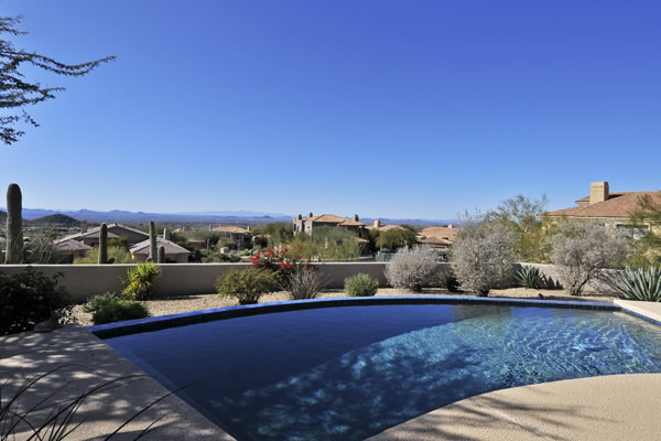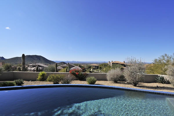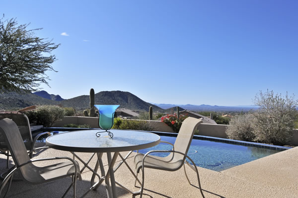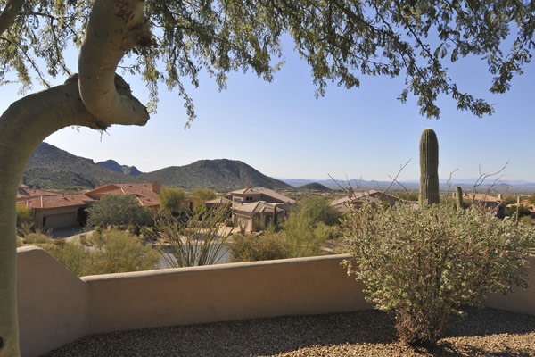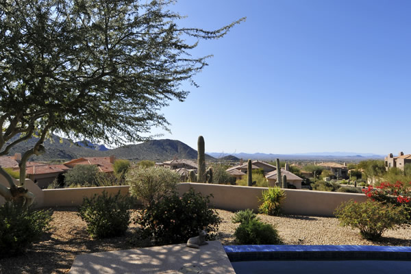 Breathtaking city and sunset views!!! Sitting near the top of the subdivision this is one of the best view lots in all of Quail Ridge. Corner lot also has large side yard with exceptional Troon Mountain views. La Jolla Great room floor plan is great for entertaining with a very open floor plan. High flat ceilings & expansive windows to take in the views. Great easy care primary residence or perfect lock and leave second home. Minutes from Troon Country Club, Four Seasons Resort and Pinnacle Peak Park.