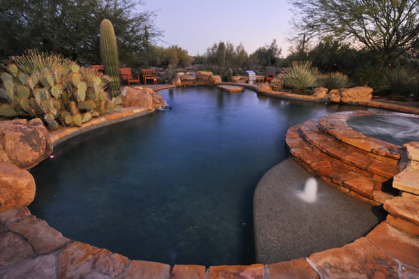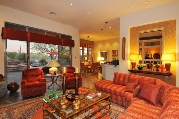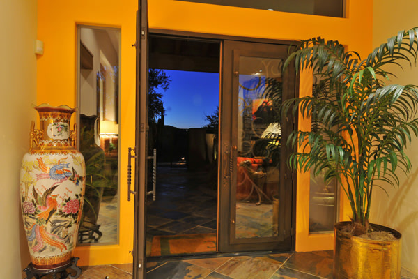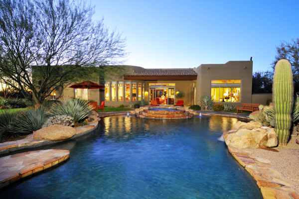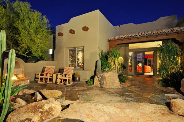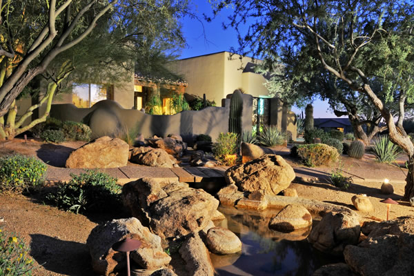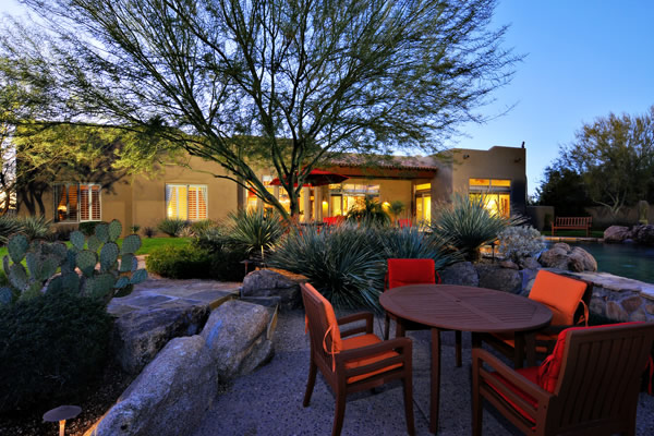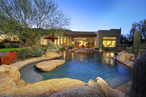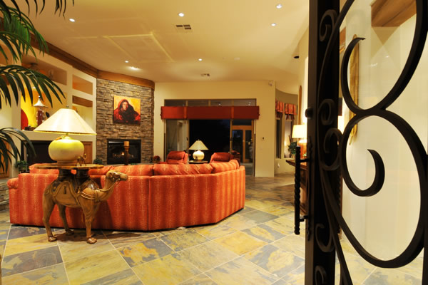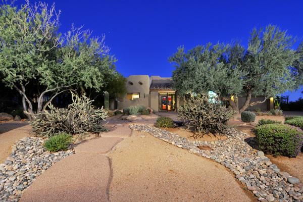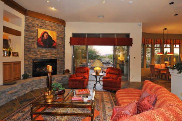 Put this home at the top of your list. Former model home on 1 acre is over the top. It has a ‘Wow’ factor that can’t be beat. Front courtyard with fireplace & flowing creek with boulders . Enter through Cantera front doors to Great room with fireplace. Great room is open to kitchen & breakfast room. Large Master Suite with beamed ceilings & direct access to pool area. Handsome office with stacked stone walls. Terrific backyard has oversized spa, large pool, fireplace, grassy area, & built-in BBQ. Pool has swim up bar, fiber optics & rock waterfall. Home features granite counters, slate floors, aggregate walkways, shutters, custom window treatments, & bose speaker system. 3rd garage used as exercise/art studio.