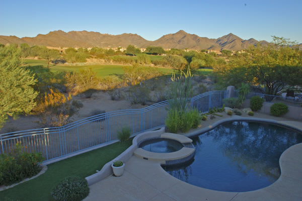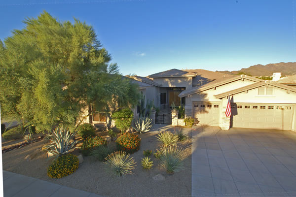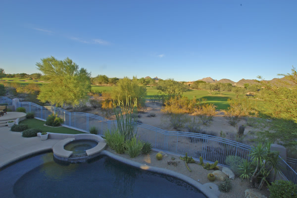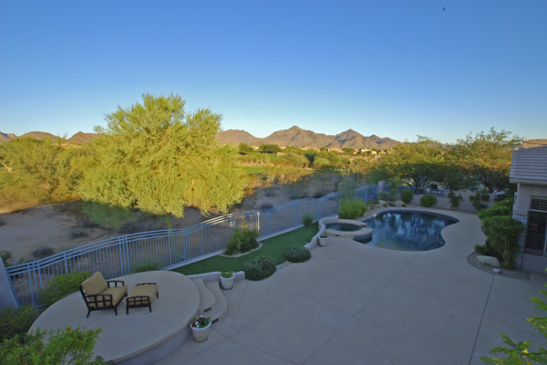 Gorgeous Engle Casita home on the golf course in guard gated Grayhawk Talon Retreat. AMAZING McDowell Mountain views across double fairways of 14th & 15th holes. Valencia model with Casita (kitchenette & full bath) has courtyard entry with flagstone. Remodeled home has walnut hardwood floors, slab granite countertops, alder wood cabinets & 2011 Viking S/S appliances. Great outdoor living includes Pebble-Tec pool & spa, raised fireplace seating overlooking the McDowells, misting system & built-in BBQ. Shutters, sound system & extended length 3 car garage. Mounted TVs with direct TV systems in family room & master to convey!