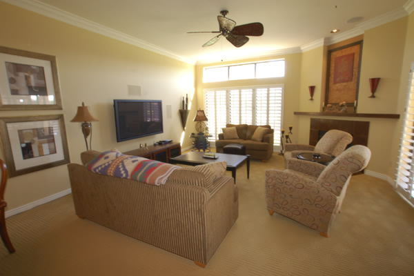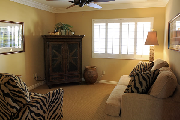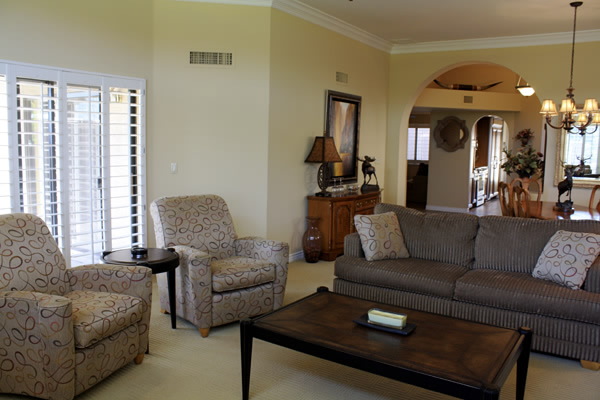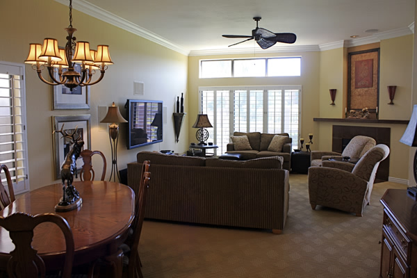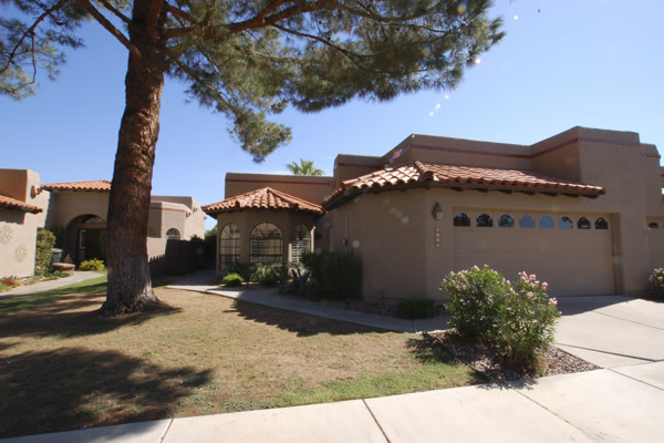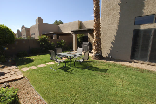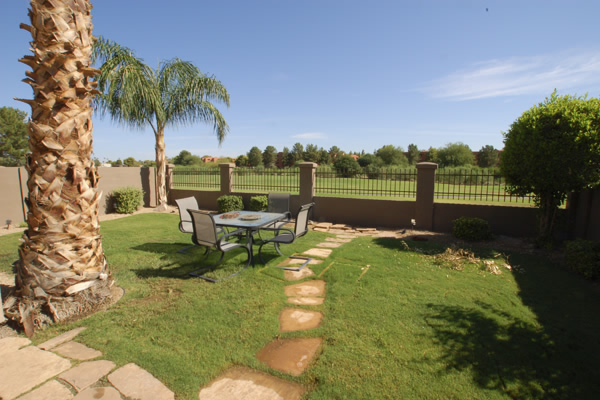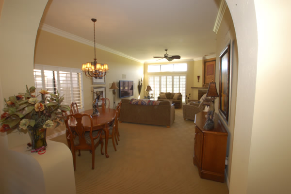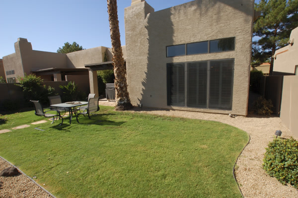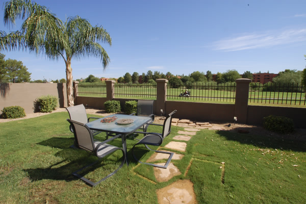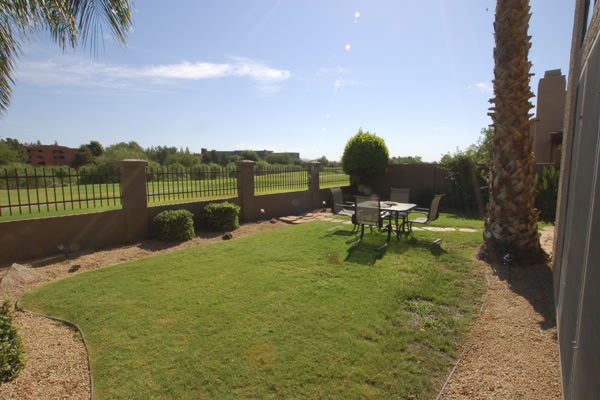 Premium golf course lot in the guard gated Springs with 2 bedrooms + den split bedroom floorplan! Remodeled kitchen with new cabinetry, granite counters, built-in microwave, counter dining & breakfast areas with plantation shutters! Dining/living room have fireplace that opens to north facing patio. Master bath with new cabinetry, granite counters, walk-in shower, plus walk-in closet. Covered patio out back with new grass and views of the fairway. Two car detached garage with owned water softener. Home is across the street from beautiful park & short walk to tennis courts & Stonecreek golf course.