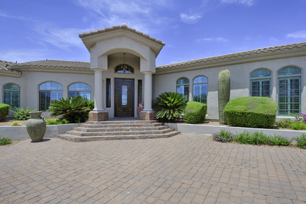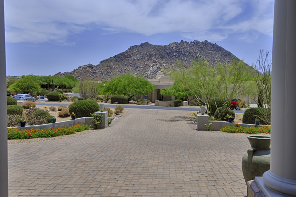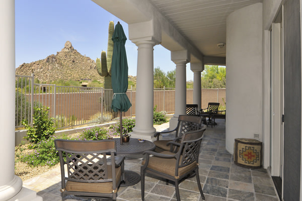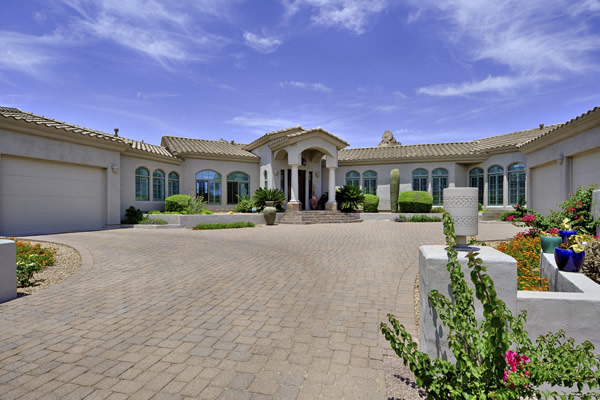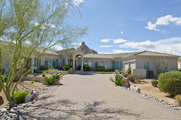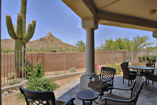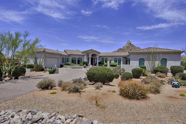 MOTIVATED SELLER! Custom home in Troon Fairways at Troon Village with breathtaking views of Pinnacle Peak from the backyard & Troon Mountain views from the front. Brick pavers lead you up to this Ranch style home with Master Suite, Office, & 2 garages on one end and 2 guest bedrooms & 1 car garage on the other end. Spacious Master Suite with fireplace & large bath with jetted tub. Home featuReshigh flat ceilings with a very open & flowing Great Room floor plan. Large Kitchen with double islands opens to Great Room with fireplace & wet bar. Shutters, crown molding, granite counters, & Dacor double ovens. Minutes away from Pinnacle Peak Park, Four Seasons, & Troon Country Club.