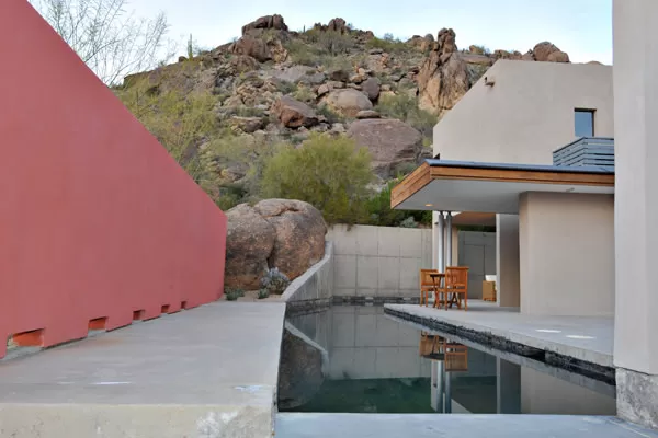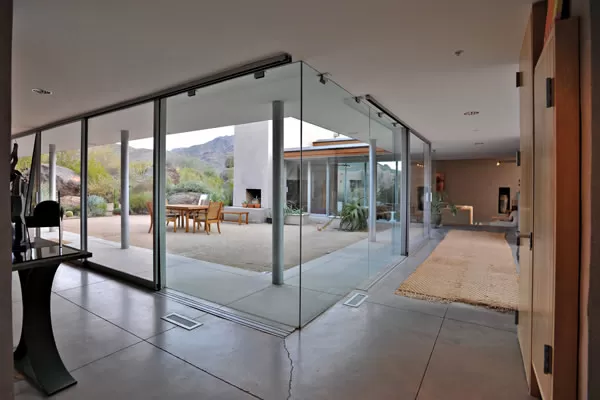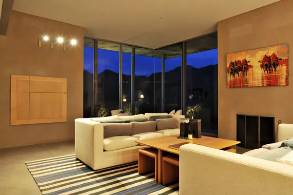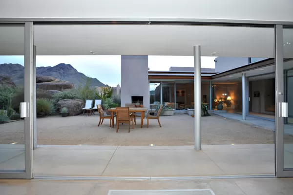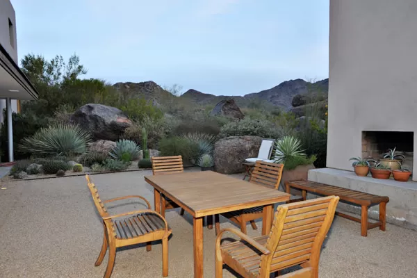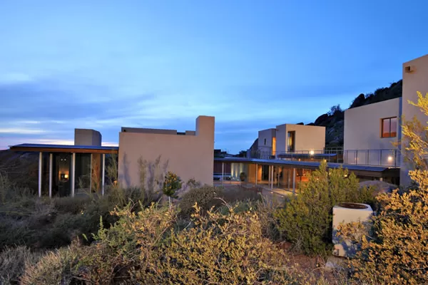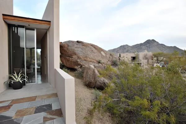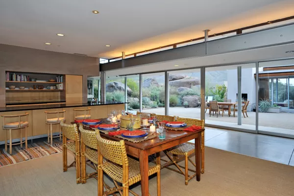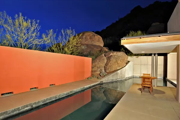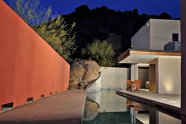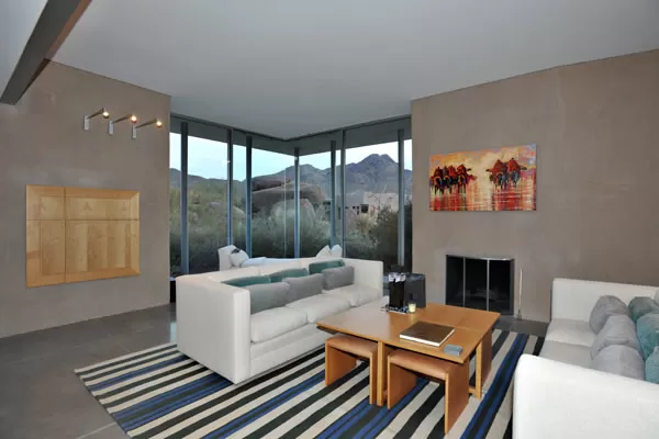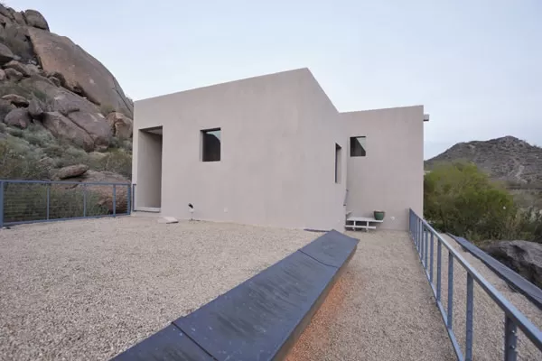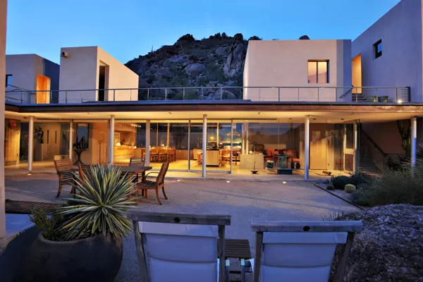 Designed by world renowned architect, Charlie Lazor, this spectacular contemporary home is a piece of art. Set in the side of Troon Mountain on a 2 acre lot with city light & mountain views this home is like no other home in the area. Walls of glass doors open on both sides of the home to create a unique environment of the outdoors being indoors. The kitchen is in the center of the home where everything revolves around. The home is modern, eco-friendly, & spacious. Main house has 4 bedrooms, 4.5 baths plus a guest house with additional bedroom & bath.