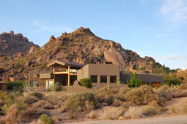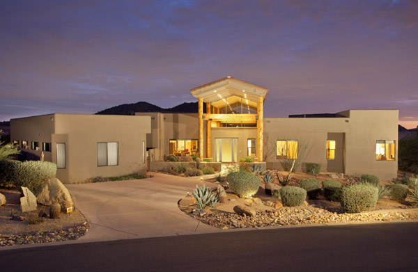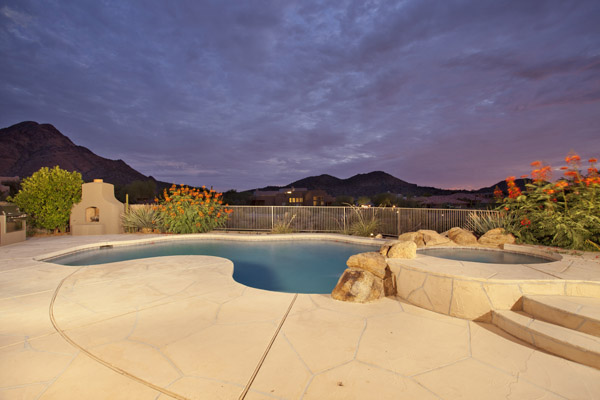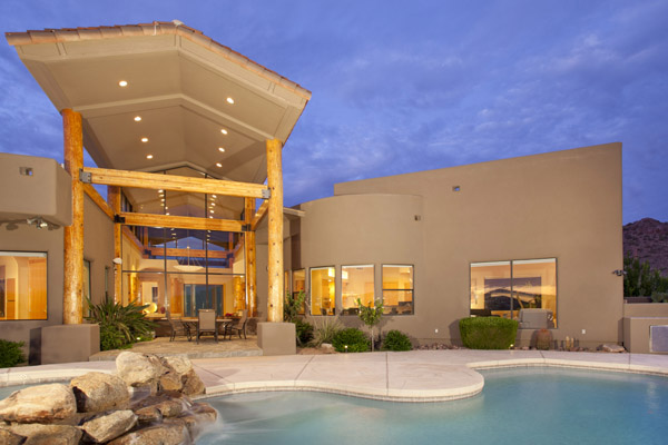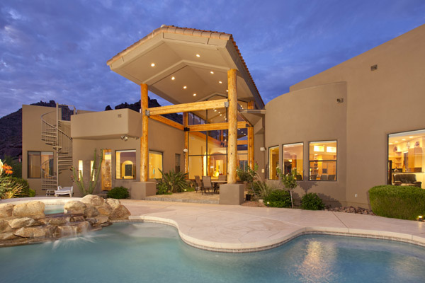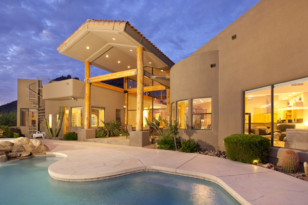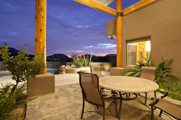 Contemporary home in gated Troon Ridge Estates I & II in Troon Village. Enter the home with soaring ceilings and large windows to take in the beautiful Troon Mountain views. Open floor plan has centrally located bar with easy access to Living Room, Dining Room, & Family Room. Lots of natural light make this home light and bright. Granite counters, stainless steel appliances, multiple ovens, travertine floors, & wooded beams. View deck, pool, spa, built-in BBQ, and fireplace to enjoy the great Arizona sunshine. This home also gets Pinnacle Peak & city light views. To top it all off there is a 5 car garage for all your cars, boats, & toys!