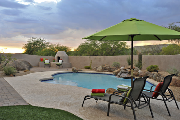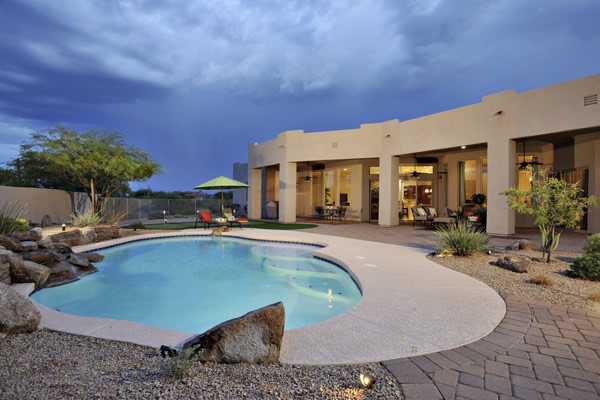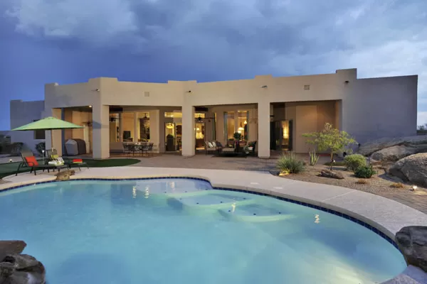 2004 Custom southwest home in the gated community of Troon Verde in North Scottsdale is move-in ready! Pavers lead you to a charming front courtyard with seating and breathtaking Pinnacle Peak views with endless sunsets. Stacked stone surrounds the cantera front door that leads you to this special home. Interior Highlights include: 24 inch travertine floors, slab granite counters, cherrywood cabinets, stone surrounds in baths, marble tops in master bath, stacked stone fireplace in Family room, central vac, 8 foot alder doors, Master with kiva fireplace, oversized 3 car garage done by Premier Garage. Exterior Highlights include: oversized covered patio, putting green, pavers, salt water pool with rock waterfall, kiva fireplace, & giant natural boulder to top off this beautiful desert setting.