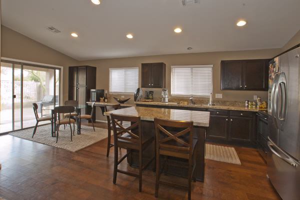 What an amazing remodel in McDowell Mountain Ranch! This 3 bed, 2 bath home located just minutes away from fine dining, shopping, and entertainment. Gorgeous rich wood floors throughout. Kitchen has granite counters, stainless steel appliances, breakfast nook, and overlooks family room with built-in entertainment niches. Exit to covered patio overlooking and open to wash and mountain views.