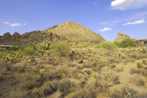Best Priced Artesano homesite in guard gated luxury home community. South facing back with city light views. This hillside lot offers McDowell Mountains, Pinnacle Peak, and Troon Mountain views. Enjoy sunset views from this private, cul-de-sac location. Buildable lot borders common area with beautiful boulder outcroppings. Located within Troon Village master planned golf community. Private golf club or social membership is optional. Very exclusive guard gated community.
