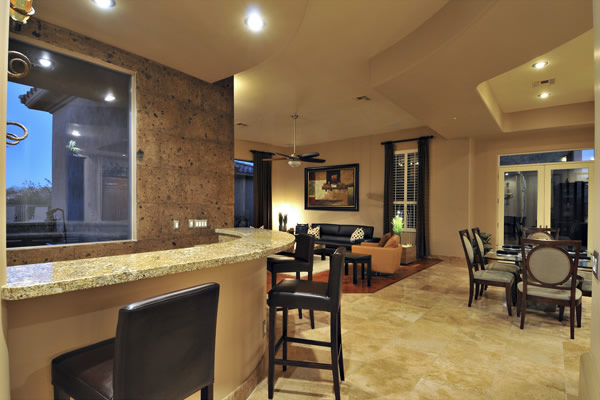 Stunning contemporary home located in guard-gated Boulder Pass at Troon Village is perfection in the making! All the work has been done for you-complete gut & remodel in 2010 is move-in ready. Home has soft contemporary design with sleek built-ins. Open & flowing floor plan with formal living room/dining room open to radius bar with dishwasher & wine fridge that also services Family room.