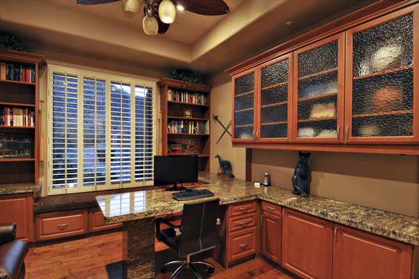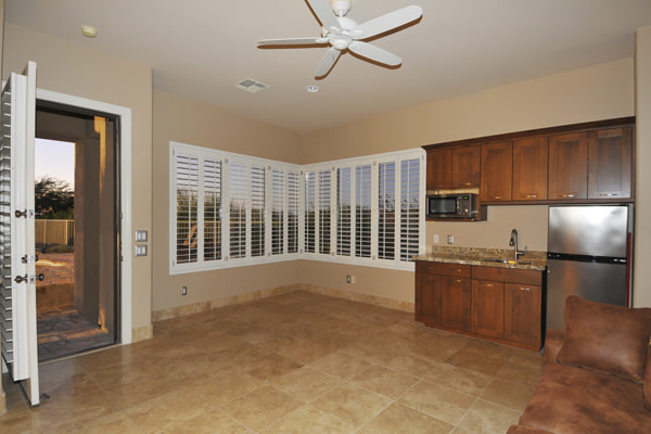 Main house featuRes3 bedrooms + Office (custom built-ins) & 3.5 baths. Detached guest casita has separate entrance off pool with bedroom & bath.
