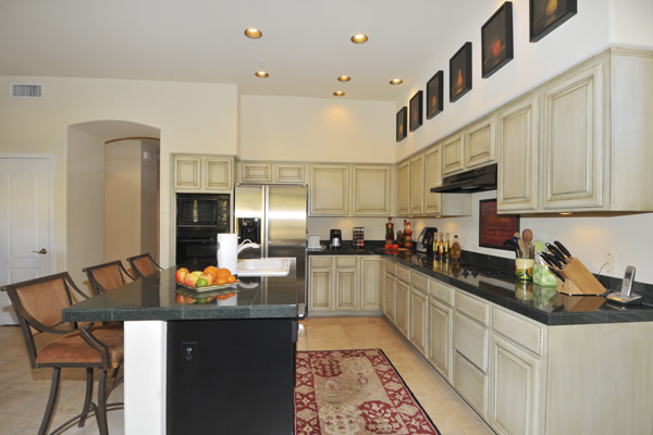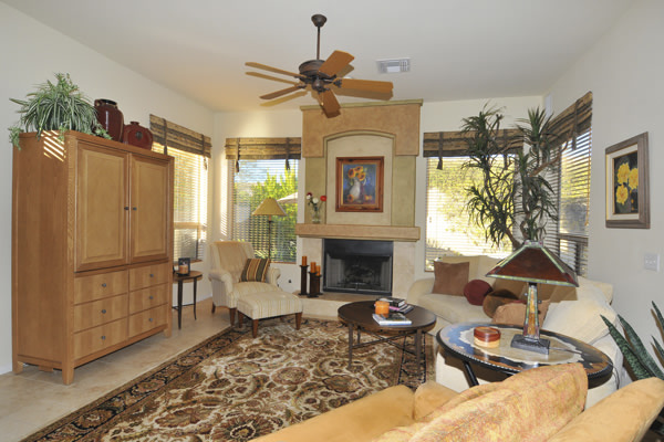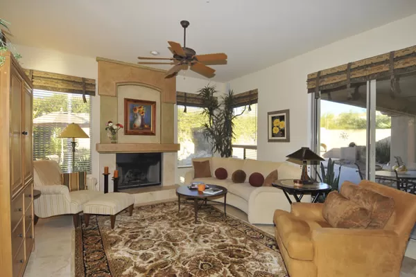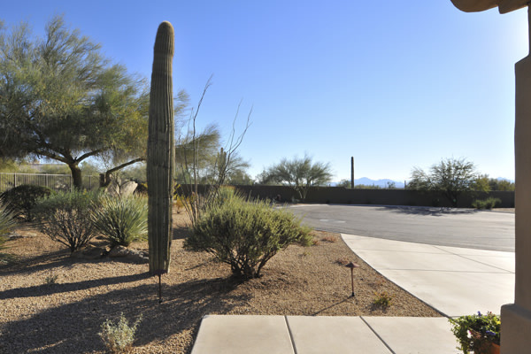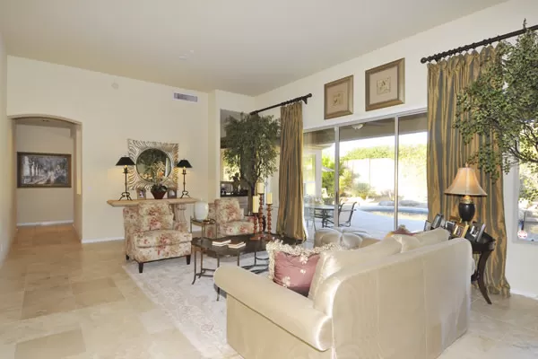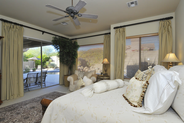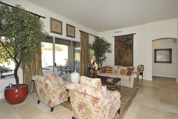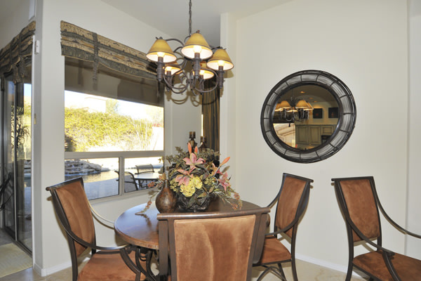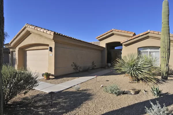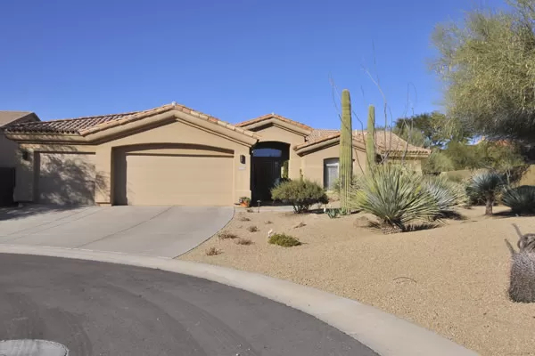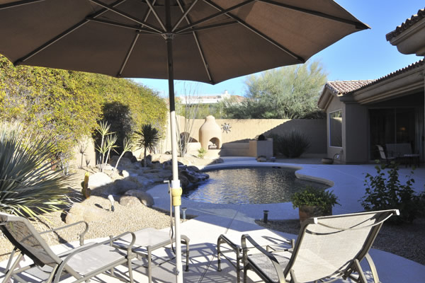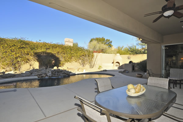 Fabulous well maintained home located in gated Canada Vista in the heart of Pinnacle Peak is a 10++. Best lot in the subdivision situated at the end of the cul-de-sac with privacy and city light views from the front. This designer showroom home can be purchased with furnishings & accessories. Single level home with no interior steps has a wonderful split floor plan with 4 bedrooms & 3 full baths. Travertine floors, custom window treatments, granite counters, refinished cabinets, custom paint, plantation shutters, & wood blinds. Heated pool with rock waterfall and fireplace to enjoy the outdoors in a private setting. Newer ACs, water heater, water softener.You’ll appreciate the pride of ownership!