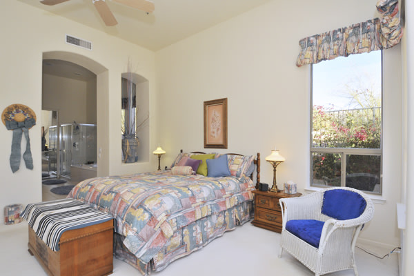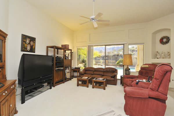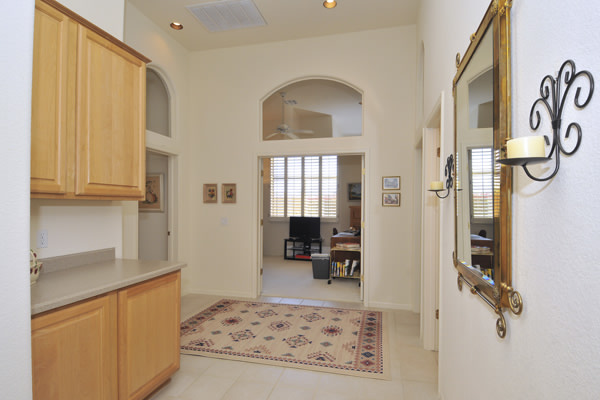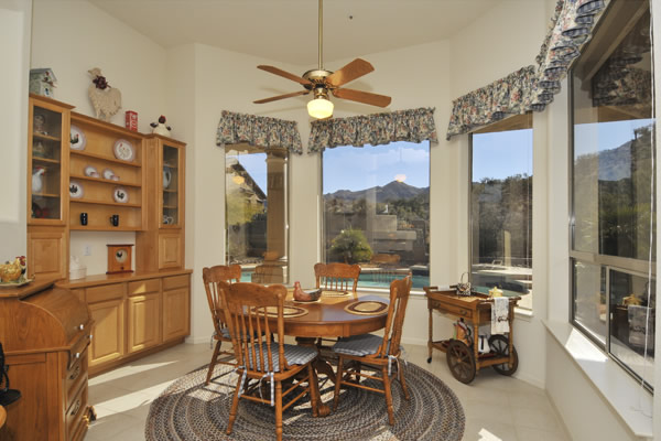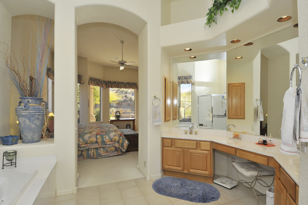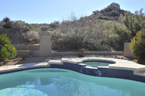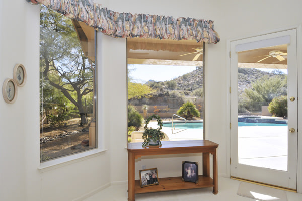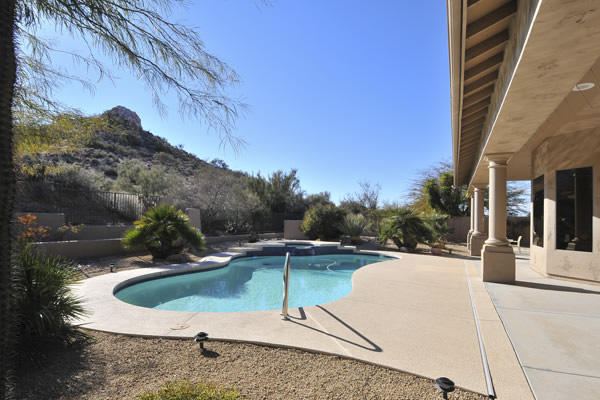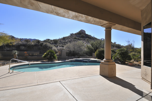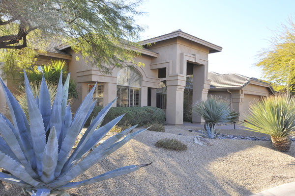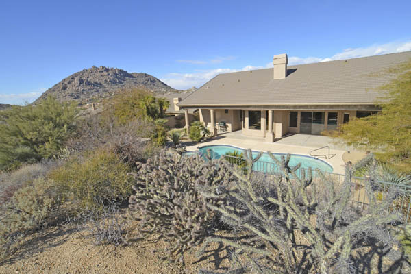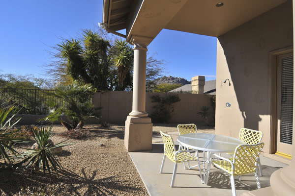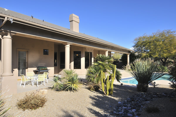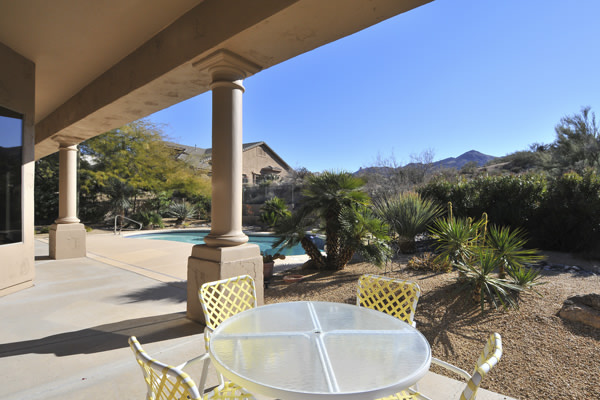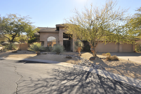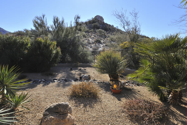 Looking for a premium view lot in Desert Crest at Troon Village- this is it! Wonderful south facing backyard backs up to NAOS creating your own hillside preserve to enjoy the natural desert setting, privacy, wildlife, and the SUN! Expanded 3305 Plan adds an additional private bath to one of the guest bedrooms to feature 3 bedrooms, office, & 3.5 bathrooms instead of only 2.5 bathrooms. Very open split floor plan with high 12′ flat ceilings – Master on one end & guest bedrooms & office segregated on the other end. Open plan allows you to enjoy the 3-way fireplace from Family Room, Kitchen, & Breakfast Room. For your outdoor entertainment you’ll find a pool, spa, outdoor shower, misters, & covered back patio that extends the length of the home. Bring your decorator and transform this home to your liking.
