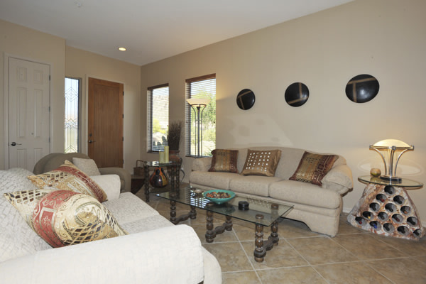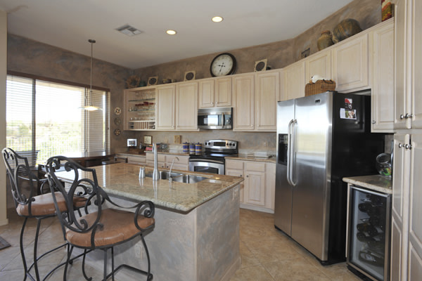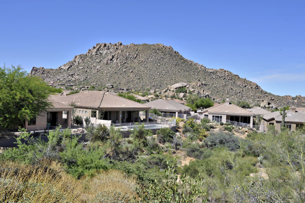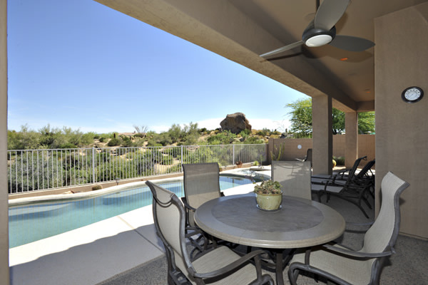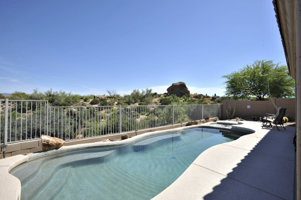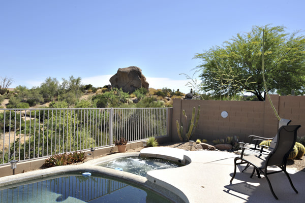 Desert Views at Troon Village home – remodeled and move-in ready!! Located on a unique N/S lot backing to Natural Area Open Space that affords privacy plus wonderful desert & mountains views. Largest floor plan in the neighborhood with 2,133sf, 3 bedrooms + office, & 2.5 bathrooms. Beautiful porcelain tile floors flow through most of the home. Kitchen features granite slab counters, S/S appliances, U-line wine cooler, & island/breakfast bar. Master has terrific views, fully remodeled bath with steam shower, & classy closet. Office has built-n cabinets and one guest bedroom has a Murphy bed. The best part is the backyard with Pebbel-tec pool, spa, built-in BBQ and views up to Carefree. Garage with epoxy floors & built-in cabnets. Furnishings available by Separate Bill of Sale.