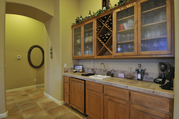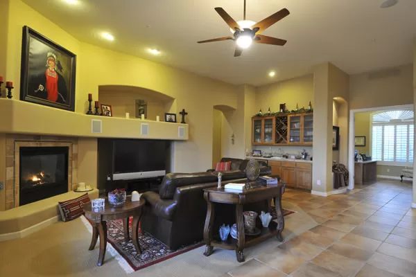 In addition to a great view, enjoy this updated home featuring: travertine stone work in dining room/family room/hallway niches, refinished cabinets, custom window treatments, office with built-ins/desk, slate floors, granite counters in kitchen, & a show stopping powder room. Backyard features larger water feature, built-in BBQ, and covered as well as uncovered patio space for entertaining.