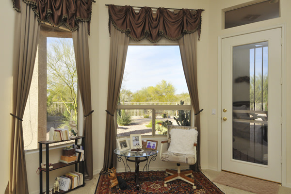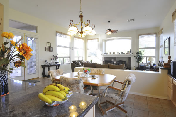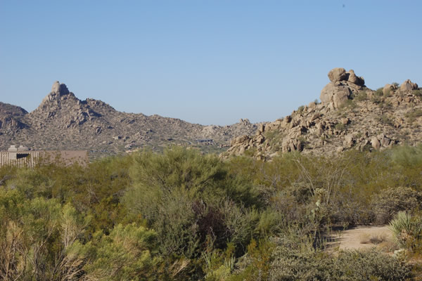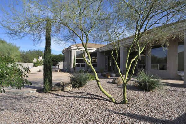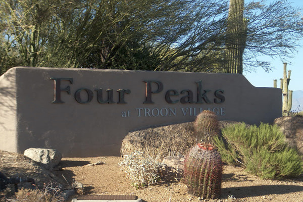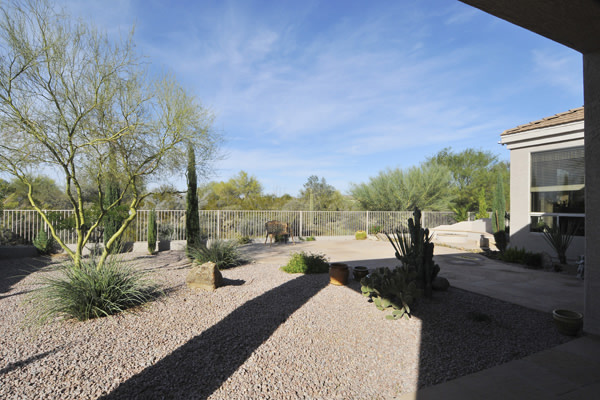 High elevation home in Four Peaks at Troon Village backs to Natural Area Open Space (NAOS) providing exceptional views of Pinnacle Peak & large boulder outcroppings. Functional single level home with no interior steps has 2,785sf, 3 bedrooms, den/office, 3 baths, & 3-car garage. One guest bedroom has en suite bath. Light & bright home with 12′ flat ceilings, large windows, & open floor plan. Large family room with fireplace opens to kitchen with slab granite counters. N/S lot has beautiful flagstone patio with banco seating and fire pit to enjoy the Arizona sunsets. Plenty of room to add a pool. Pride of ownership in this well maintained home. Troon Country Club, Four Seasons, Troon North Golf Club, & Pinnacle Peak Park only minutes from the home.