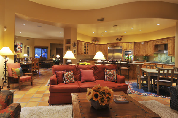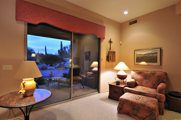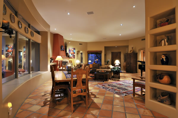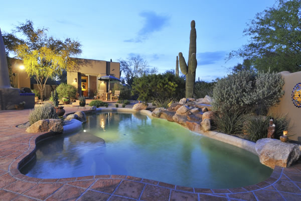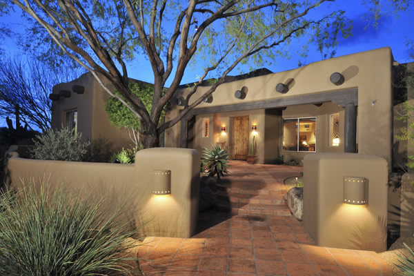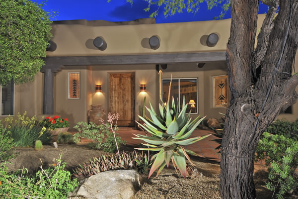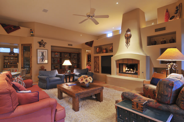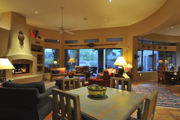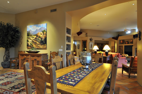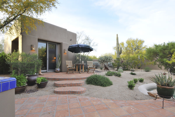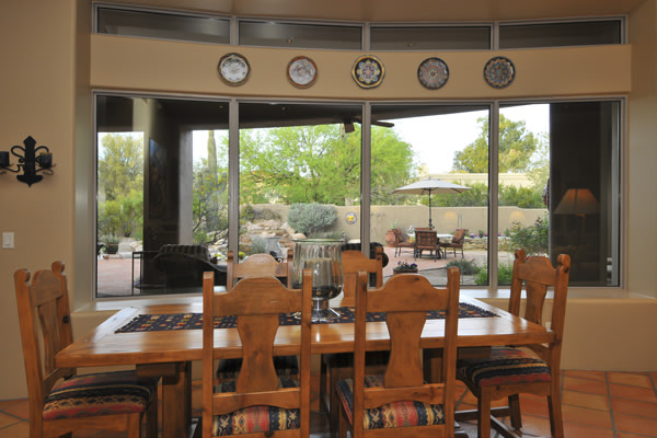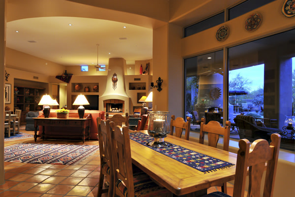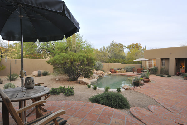 Weldon Minchew Custom Home in gated Pinnacle Peak Estates II sits on a beautiful one acre lot with lush desert landscaping & large saguaros. 3 large fireplaces provide special gathering places with an ambiance & warmth found in few homes. Very open floor plan with high flat ceilings flows from main living area directly into the Kitchen & Family room. Spacious kitchen is great for entertaining & cooking with large island, granite counters, S/S appliances, wine fridge, pull out drawers, & walk-in pantry. Enjoy incredible outdoor living with 1,000 sf of covered patios overlooking a heated Pebble-Tec pool, water feature, reverse Saltillo tile, BBQ & fireplace. Total of 4 bedrooms all with private baths (including detached guest casita), office, 3rd garage is air conditioned & used as a work/exercise room. Quiet cul-de sac