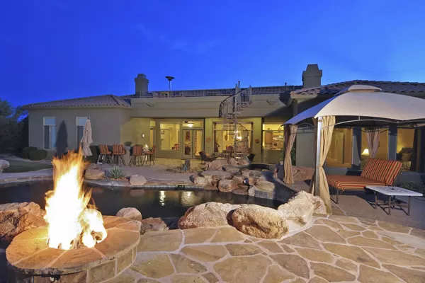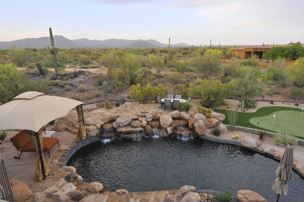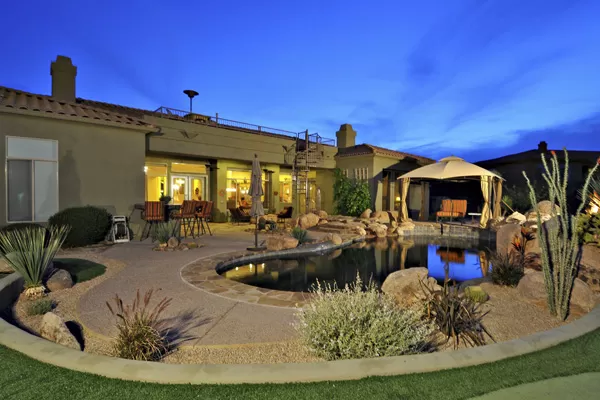Motivated Seller! Spectacular outdoor living with putting green, fire pit, Pebbletec diving pool and spa, boulder waterfall, and built-in Stainless Steel barbecue. Over 2 acReson a quiet cul-de-sac lot with view deck looking out to Continental Mountains. Home featuRes4 Bed, 4.5 Bath, office, bonus room, wet bar, & movie theater with 140 inch screen & HD projector. Master Bedroom has exercise room which could be 2nd walk-in closet. Kitchen features: large center island, slab granite counters, Kitchen Aid appliances. Split floorplan with plantation shutters, 4 car garage, gate for RV/Boat, courtyard with custom double door entry & fountain.