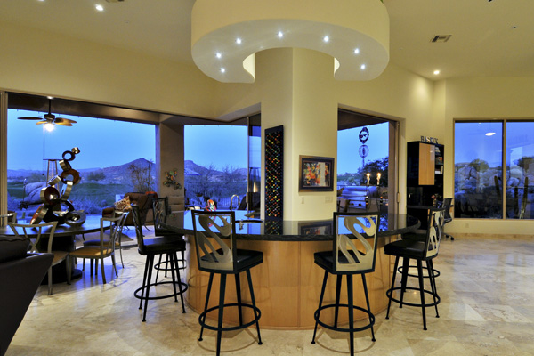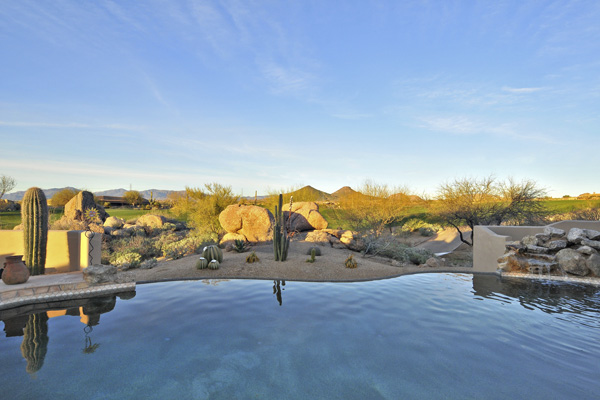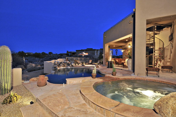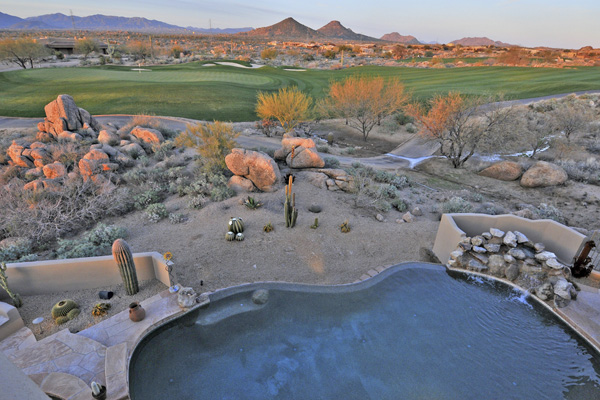 Taking full advantage of the largest lot(1.7 A)in Talus, this Sabacco custom contemporary overlooks the 3rd fairway of the Pinnacle Golf Course & has spectacular views beyond the McDowell Sonoran Preserve all the way to the Continental mountains! Upon entering, the large Great Room with 20′ ceilings sets the tone for this stunning home & opens to a central bar with barstool seating, Dining, & Kitchen areas. The fully retractable walls of glass are the ultimate in entertaining drawing you to the outdoors. Large covered patios, negative edge pool, spa, fireplace, Wolf built-in BBQ & the nicest viewing deck you’ll find in North Scottsdale. This private retreat featuResa main house with 3 bedrooms + office & a detached guest casita with livingroom, kitchen, bedroom & bath. Impeccable finishes & an extensive list of home improvements.