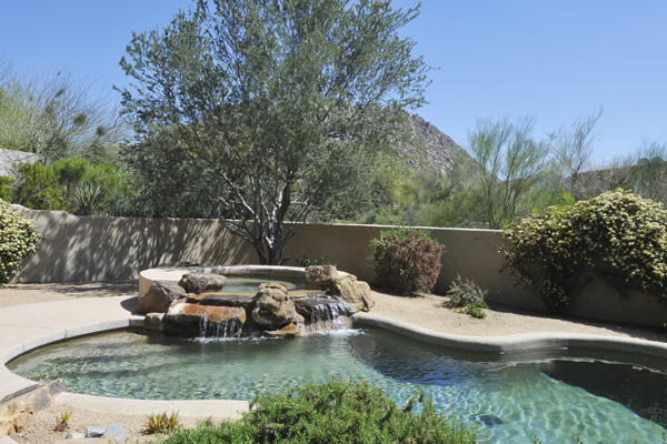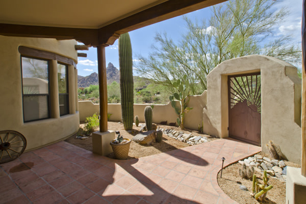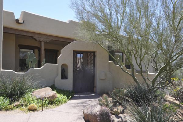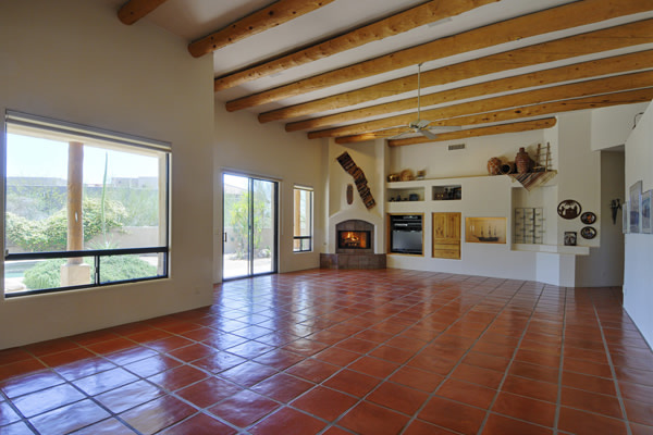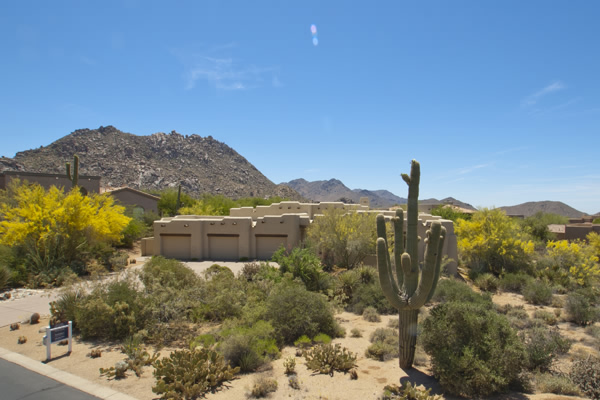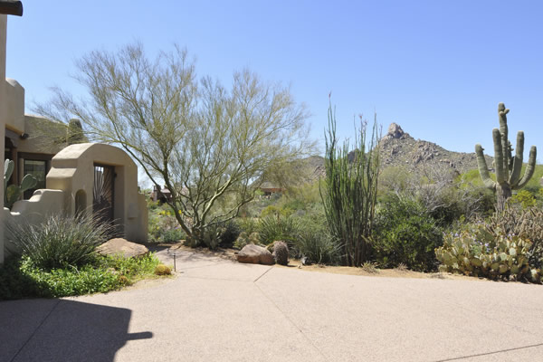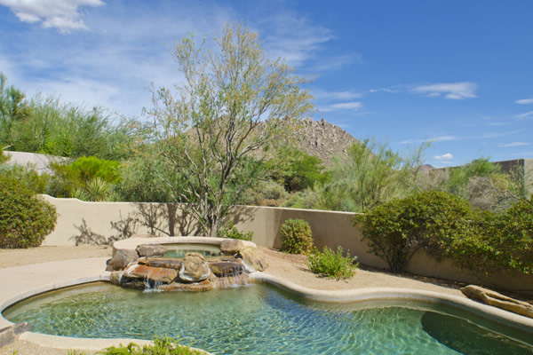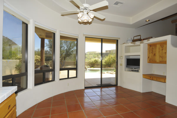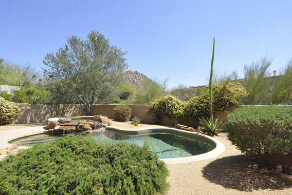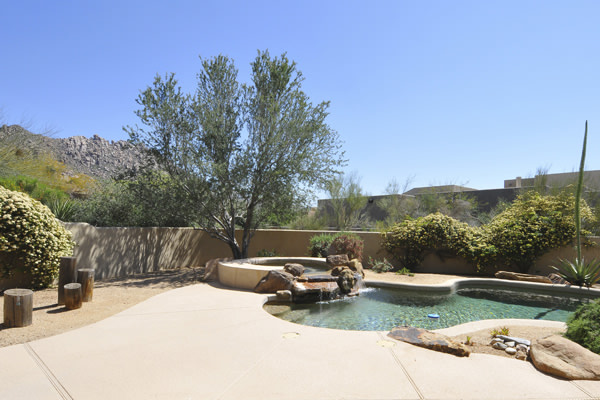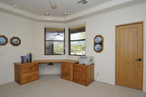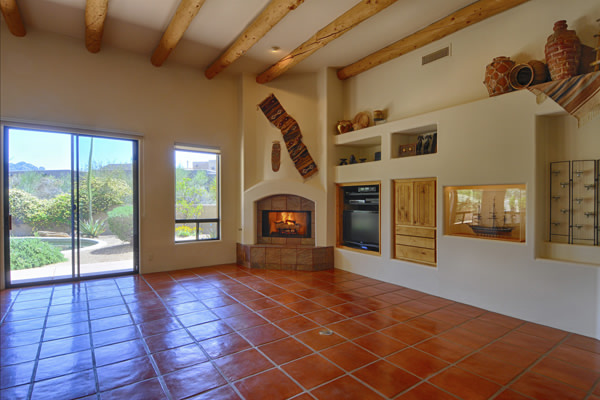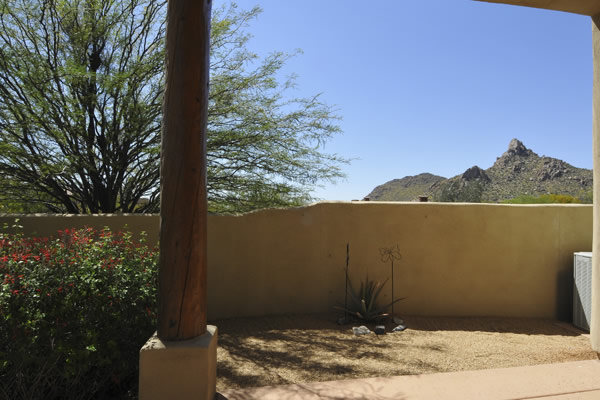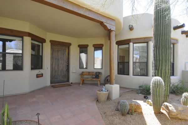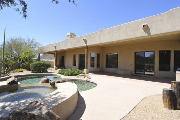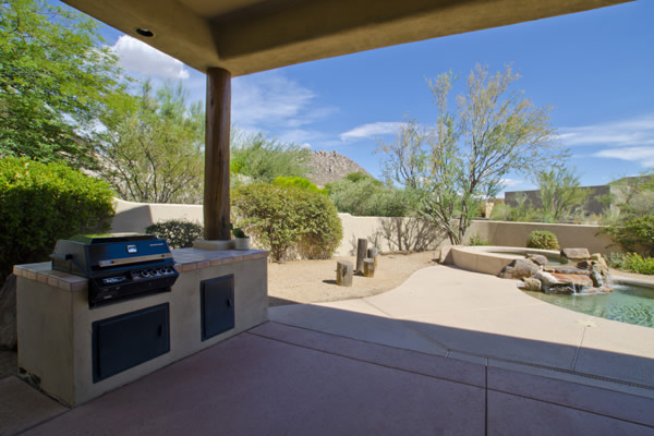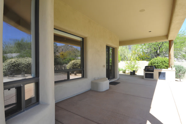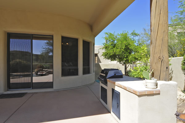 Motivated Seller!! Phoenix Smith custom home in gated Troon Fairways at Troon Village. Interior lot with a South facing backyard has privacy and views to Troon Mountain plus beautiful views of Pinnacle Peak from the front. Ideal Great Room floor plan with no interior steps has 3 bedrooms (3rd bedroom has custom knotty alder built-in desk) & 3 full baths. Great room has high flat beamed ceilings, Saltillo tile floors, bar area with fridge, and gas fireplace. Kitchen has large island with bar stool seating open to the breakfast room. Covered back patio runs the length of the house for wonderful outdoor living. Backyard featuResPebble-Tec pool and spa with rock waterfall and built-in BBQ. 3 car garage is spacious with 3 single bays, work bench, built-in cabs, and evaporative cooler.