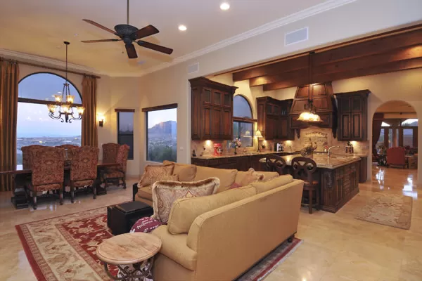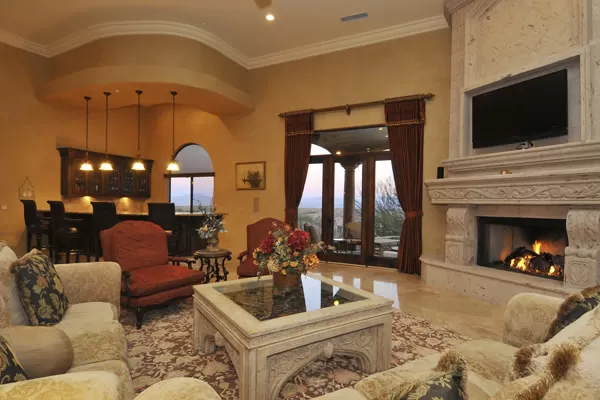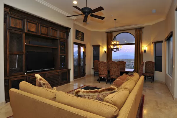 Spectacular 2007 Tuscan home with fabulous Four Peaks & McDowell Mountain views in all directions. Spacious 6,116 sf home in guard gated Troon Village has a large open Living Room with signature Dining Room featuring pergola, large entertaining bar, & floor to ceiling Canterra fireplace flanked by walls of windows to take in all the views. It’s all here including automated lighting, Wolf & Sub Zeros appliances, double stacked custom kitchen cabinets, 24×24 travertine floors, thick slab granite counters, walk-in wine cellar, movie theater room, game/bonus room, & circular drive with brick pavers. The outdoor space couldn’t be more inviting with beautiful pool, spa, BBQ, fireplace, & travertine pavers.