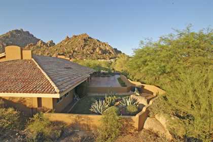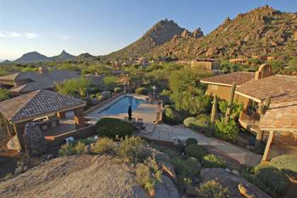 Spectacular sunsets, city lights, Pinnacle Peak, & Troon Mountain views. If you’re ready to have some fun, this is the home for you. Custom home in gated Troon Ridge Estates I & II at Troon Village. Great home for entertaining – inside & out. Multiple patios front & back. Dynamic pool area with large boulder outcroppings, covered Ramada, built-in BBQ, bar stool seating, fireplace, bonco seating, & easy care stamped stone deck. Inside enjoy an open floor plan with kitchen open to living/dining areas & family room. Two wonderful bonus areas – downstairs is a game/media room with walkout patio that connects to the pool area, upstairs has a loft area for an office/craft room. Loads of storage throughout the home & lots of room for visitors, kids, or grandkids.