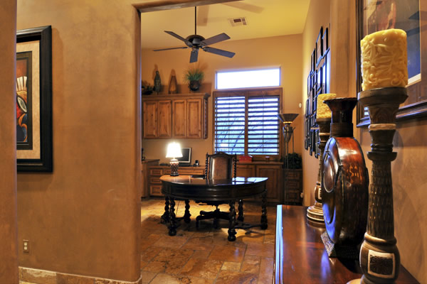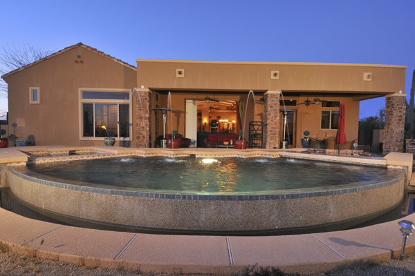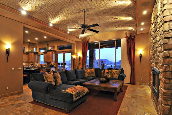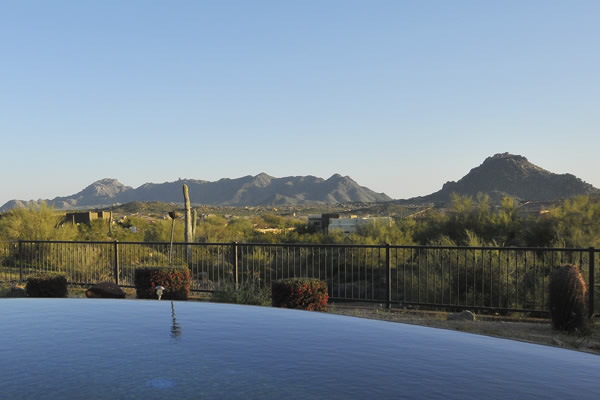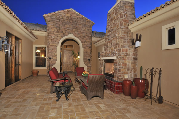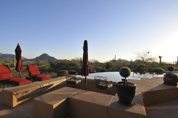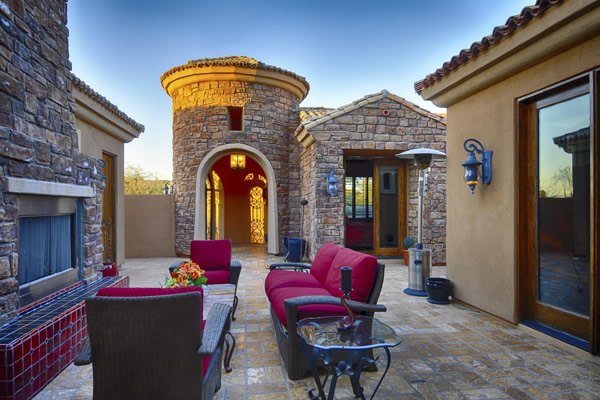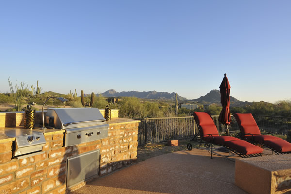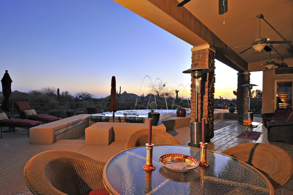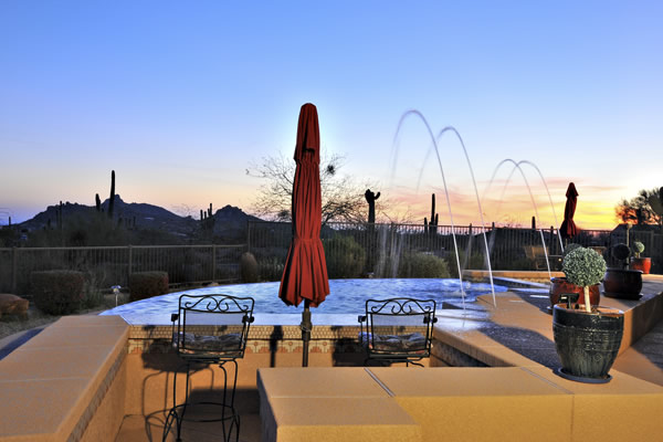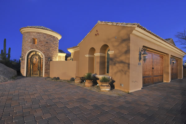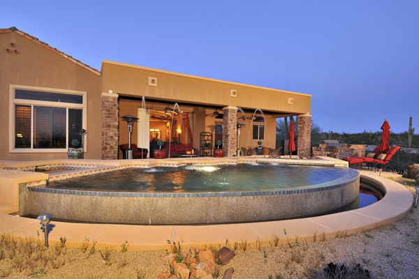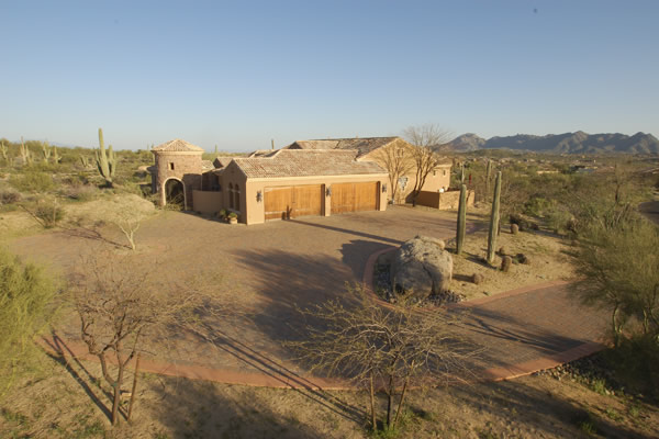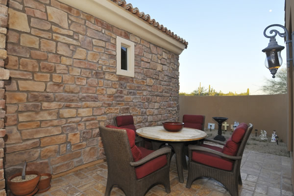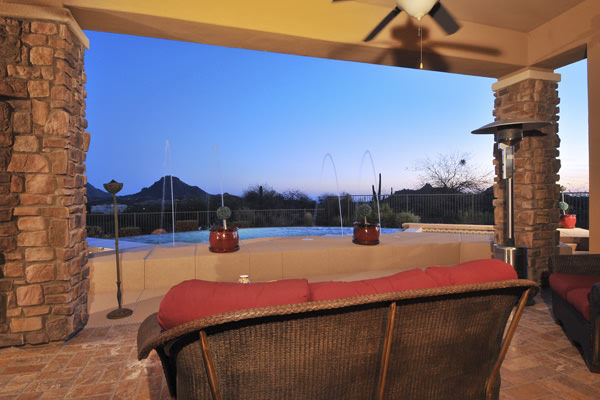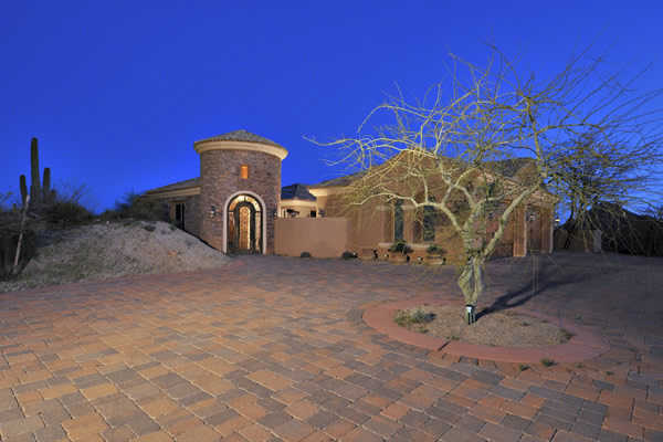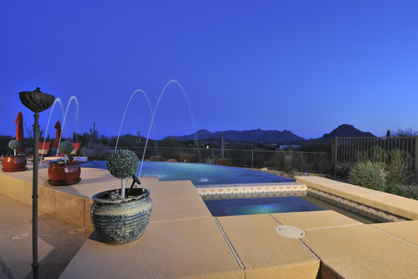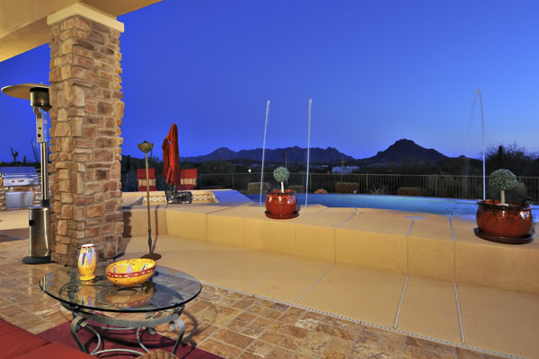 Bigger is not always better – custom home (3,017 sf) in gated Troon Verde has a special ambiance and warmth found in few homes and is loaded with upgrades! Home sits on 1.687 acReswith protected views and privacy to the McDowell Mountains and Pinnacle Peak. Circular drive out front leads to a wrought iron gated entry. Charming front courtyard has travertine floors and stacked stone fireplace. Great Room with arched brick ceiling and travertine floors has fully retractable doors leading to the backyard with negative edge swimming pool, spa, and swim up bar. If you love to cook, this is an incredible Kitchen designed for a chef. Subzero side-by-side refrigerator/freezer, Viking appliances, pot filler, pull out spice racks, and oversized island. Exterior & interior stonework and knotty Alder