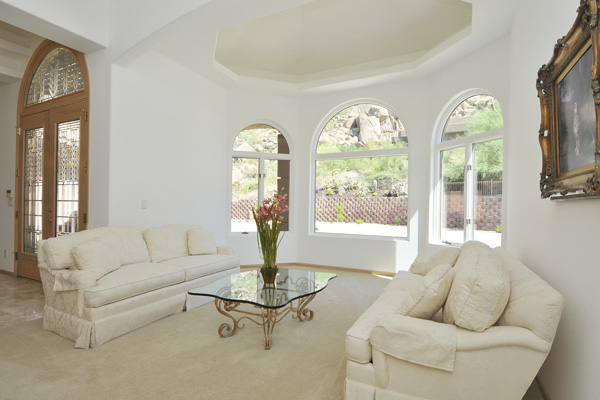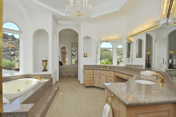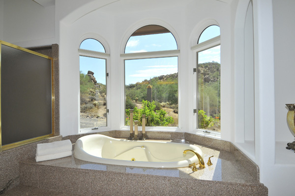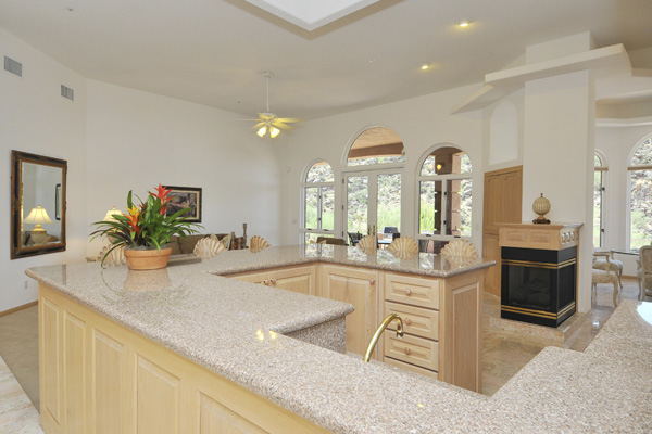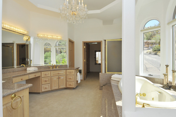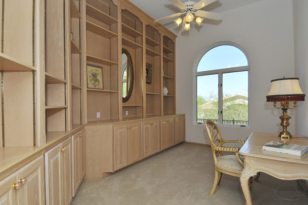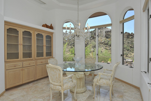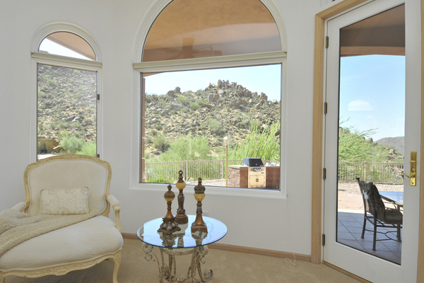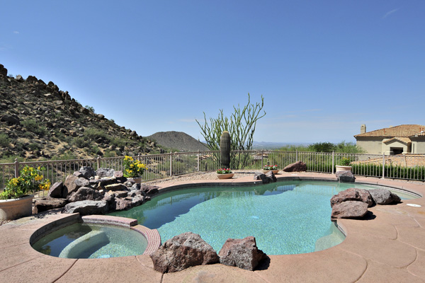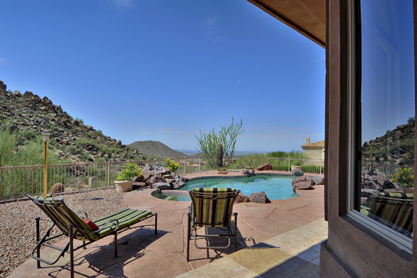Well built custom home situated on 1 of only 7 custom home sites at the top of Whispering Ridge Subdivision, Troon Village. With outstanding views of Phoenix city lights, Troon Mountain, and beautiful hillsides, this property makes you feel like you are on top of the world. Open floor plan with high flat ceilings. Large outdoor patio featuring a pool/spa, boulder waterfall, dinning area, built in BBQ and beautiful sunsets. Oversized 4+ car garage with workbench, built-in cabinets, desk area and bath. Gated driveway with auto court. Bring your decorator and customize this lovely home to your liking!
