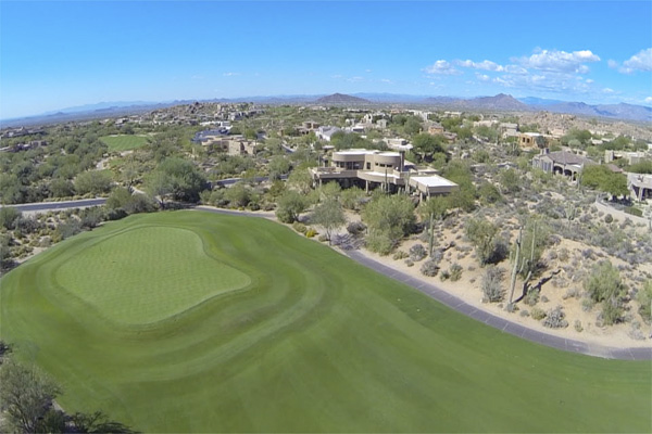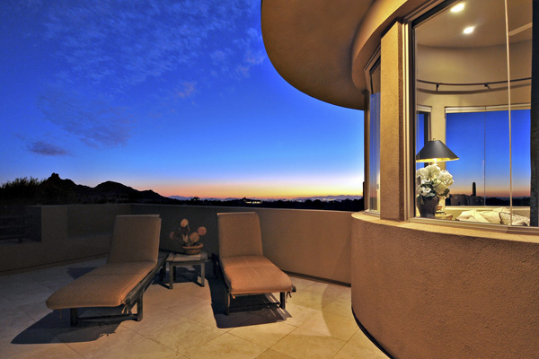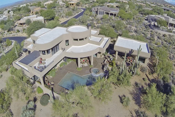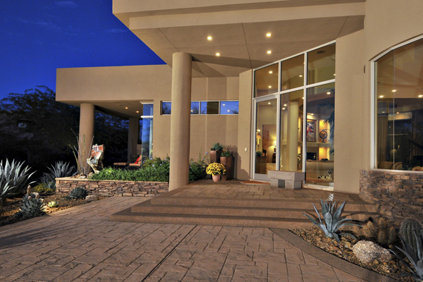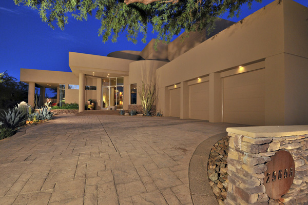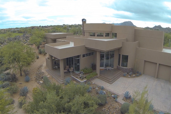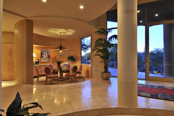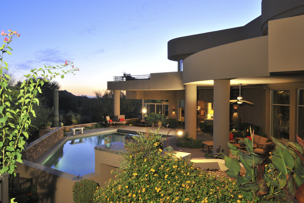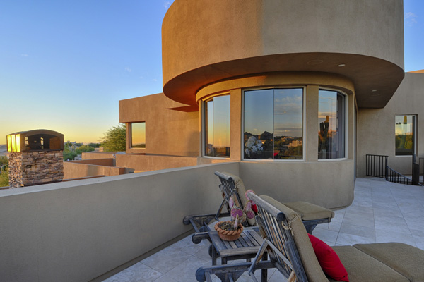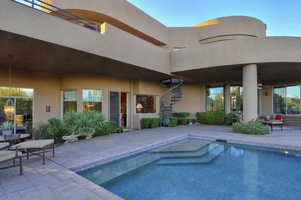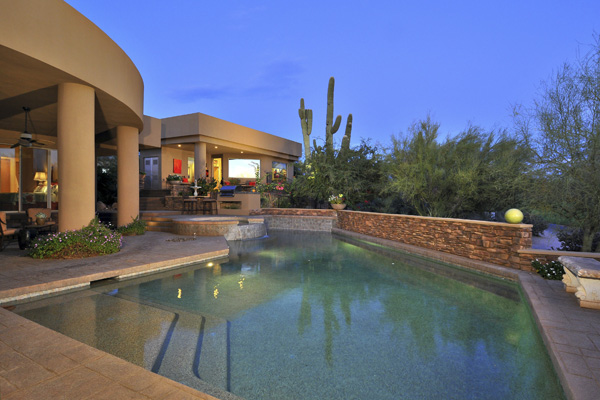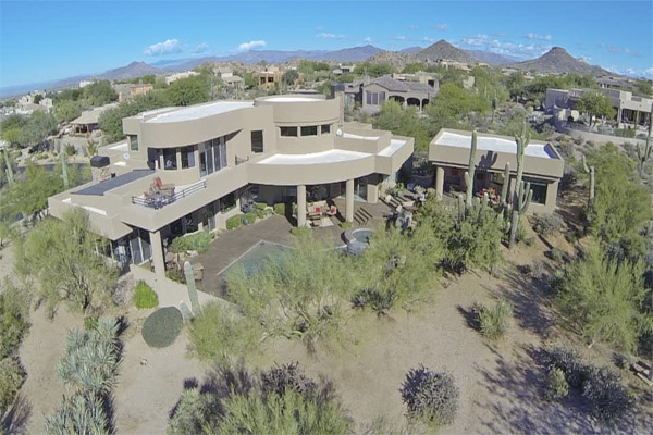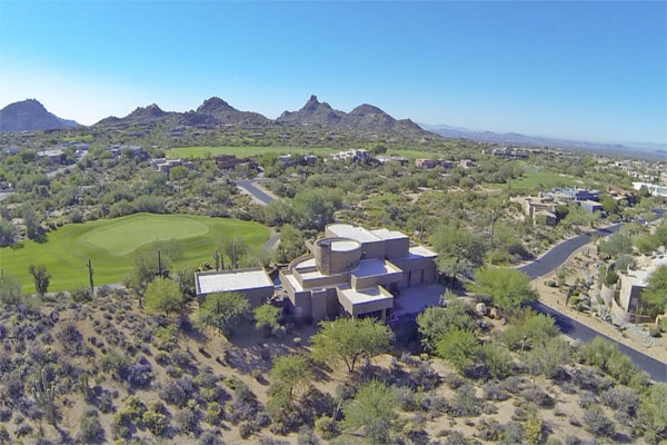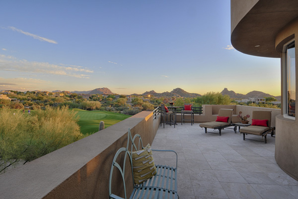 Stunning soft contemporary designed & built by Mark Sever. Expansive use of glass throughout the home allows you to take in the great views of Pinnacle Peak, the golf course, & sparkling city lights. Prime fairway lot on the 17th green of top ranked Pinnacle Course at Troon North. This home has so many unique & interesting gathering areas – it’s hard to pick a favorite spot! From the owners retreat with large sitting area & expansive balcony with forever views to the family room overlooking a rose garden with views to Pinnacle Peak. Clean lines, curved walls, clerestory windows, 4 fireplaces, & high ceilings all add to the architectural interest inside & out. Impressive outdoor living with large heated pool, spa, & fire pit. Perfect exposure to enjoy large sunny areas as well as plenty of covered patio space. Home features: elevator in main house, 18″ travertine floors, detached guest casita, & air conditioned garage. Adjacent lot is available for sale but not included in the price.