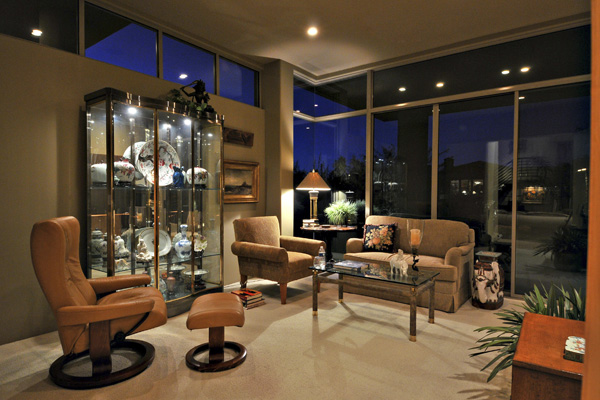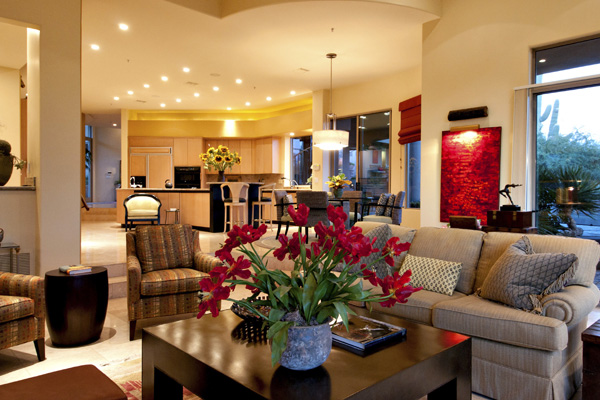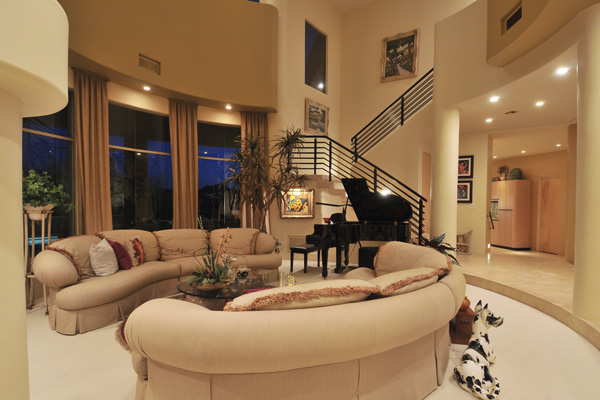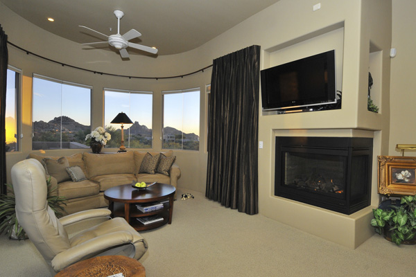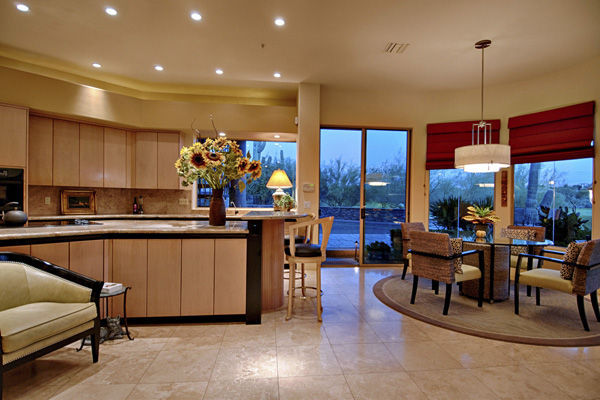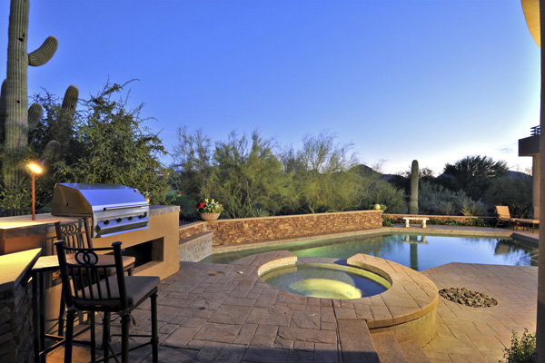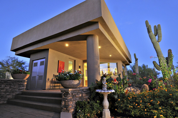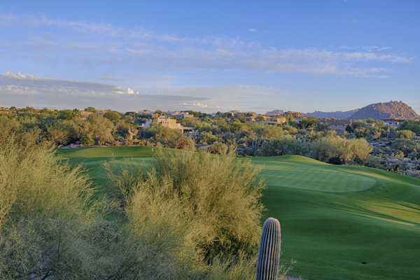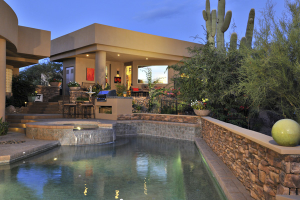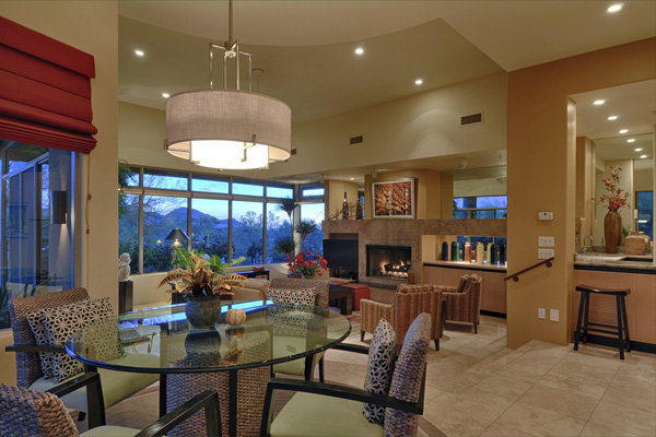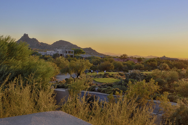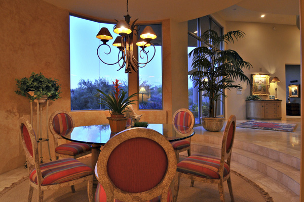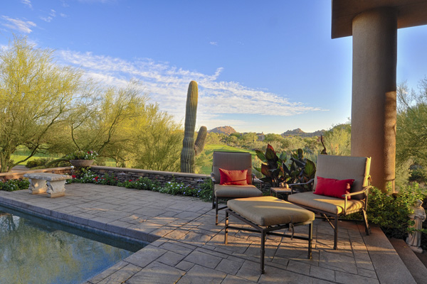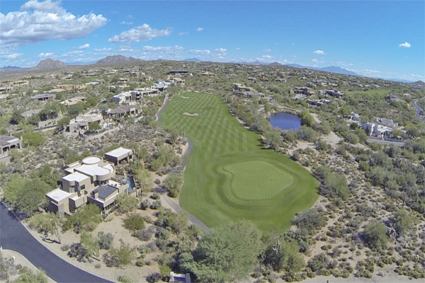 Stunning soft contemporary designed & built by Mark Sever. Expansive use of glass throughout the home allows you to take in the great views of Pinnacle Peak, the golf course, & sparkling city lights. Prime fairway lot on the 17th green of top ranked Pinnacle Course at Troon North. This home has so many unique & interesting gathering areas – it’s hard to pick a favorite spot! From the owners retreat with large sitting area & expansive balcony with forever views to the family room overlooking a rose garden with views to Pinnacle Peak. Clean lines, curved walls, clerestory windows, 4 fireplaces, & high ceilings all add to the architectural interest inside & out. Impressive outdoor living with large heated pool, spa, & fire pit. Perfect exposure to enjoy large sunny areas as well as plenty of covered patio space. Home features: elevator in main house, 18″ travertine floors, detached guest casita, & air conditioned garage. Adjacent lot is available for sale but not included in the price.