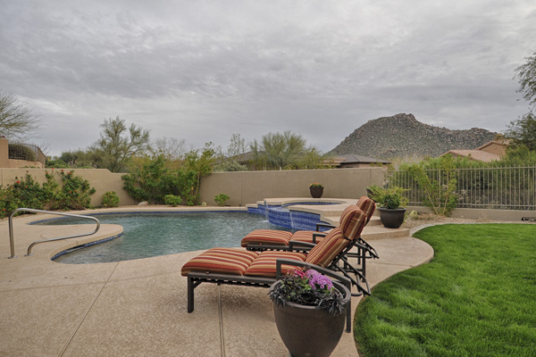 Remodeled home in gated Desert Summit has a special ambiance and warmth and is loaded with upgrades! Home sits on a N/S half-acre lot with protected views and privacy to Troon Mountain and large boulder outcroppings. Enter through a beautiful canterra front door with glass panel that opens to enjoy the fresh air. Popular Sonoma split floor plan featuring 4 bedrooms, office, 3.5 bathrooms, & 4 car garage. If you love to cook, this totally gutted and remodeled kitchen is designed for a chef. Subzero side-by-side refrigerator/freezer, Wolf appliances, wine bar with wine cooler, & oversized island with bar stool seating. Sunny south facing backyard has pool, spa, built-in BBQ, grassy area, and awning. This home is fabulous – come take a look for yourself!