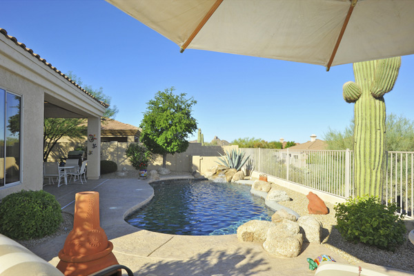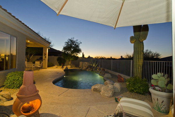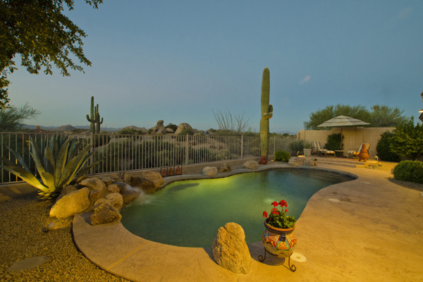 As soon as you walk through the front door – your first impression will be – WOW this is a great view! This former model is on an exceptional lot with views in all directions. Outback enjoy large boulder outcroppings & mountain views to the north as well as Pinnacle Peak. Unbuildable lot across the street provides additional privacy, desert vistas, & Troon Mountain. views. Inside: Brazilian tiger wood flooring, full bull-nose granite counter tops, & stainless steel appliances. Outside: self-cleaning Pebble-Tec pool with rock waterfall, stone-like concrete decking, & elevated seating for Pinnacle Peak views. Garage: sealed floors, garage niche enclosed for clean workshop with wall AC, & new insulated garage doors. New high efficiency Carrier HVAC, Cat 5 wiring, and speakers inside & out.