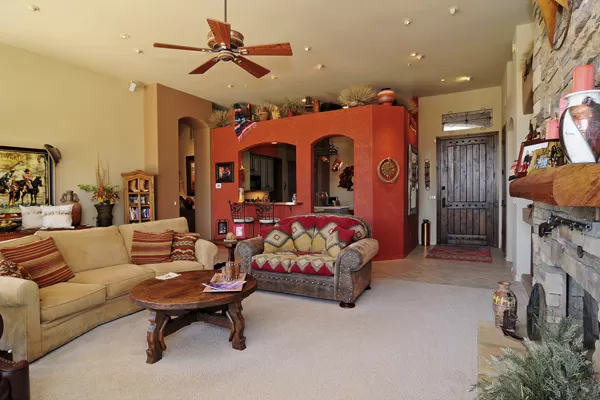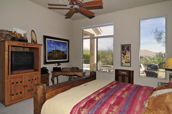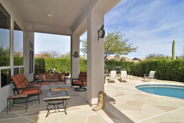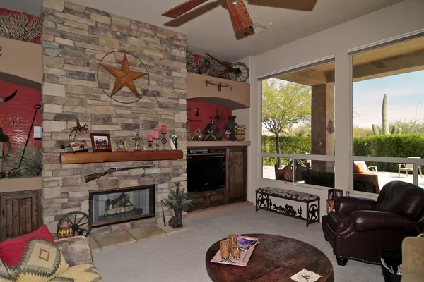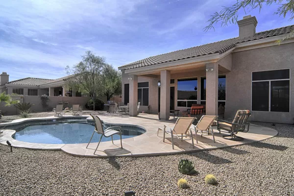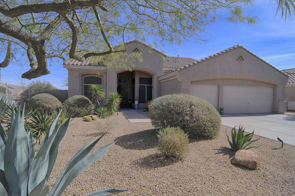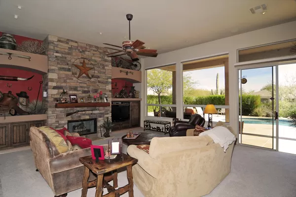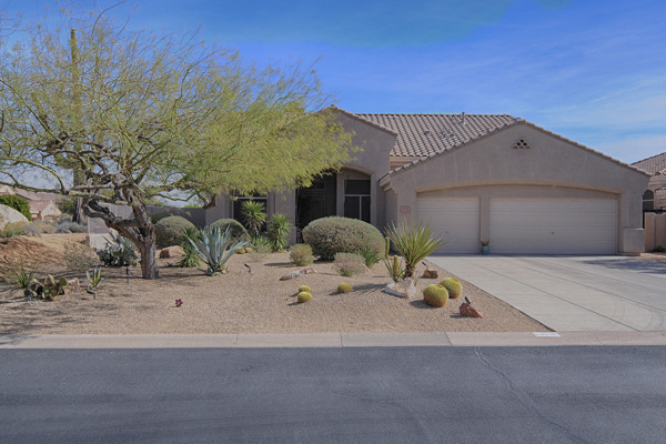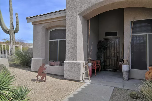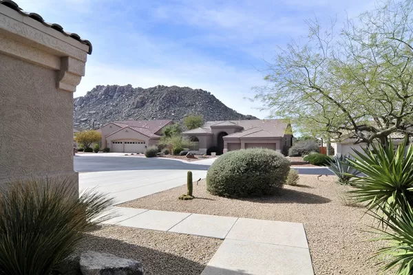 Troon Village home on corner lot in a cul-de-sac backs to Natural Area Open Space (NAOS) and has wonderful views of Troon Mountain from the front and the McDowell Mountains from the back. This home has a TRUEArizona feel inside and out! Open Great Room floor plan is functional and lives larger than the actual square footage with Master on one side and 2 guest bedrooms on the other side. Great Room featuRescustom cabinets and floor to ceiling stacked stone surrounding the gas fireplace. Kitchen has refinished cabinets, island, and dining area. High 12-foot flat ceilings and large windows make this home light and bright. Heated Pebble-Tec pool with in-floor cleaning was added in 2005. Covered as well as uncovered patios for exceptional outdoor living. Single level with no interior steps.
