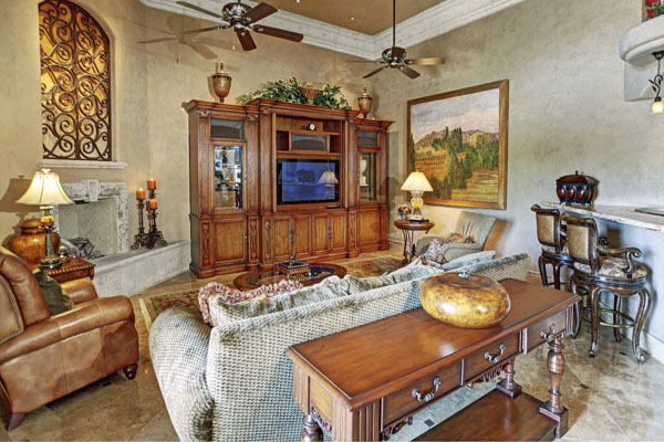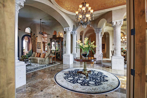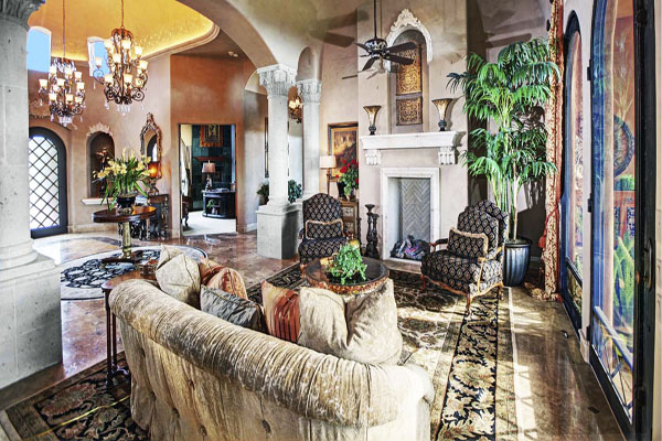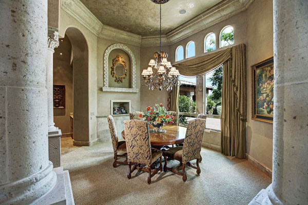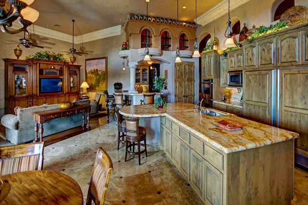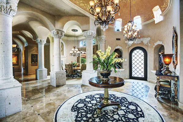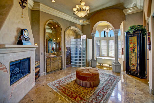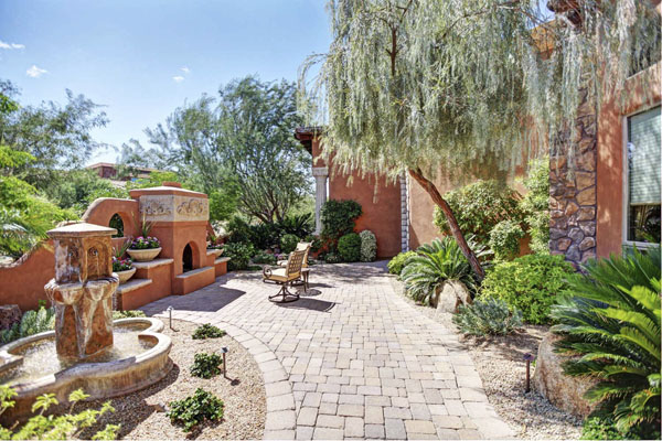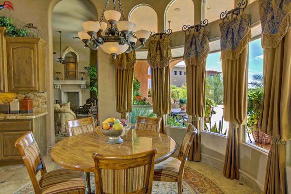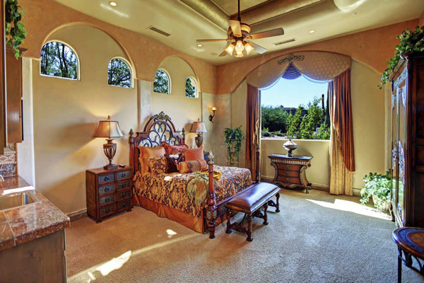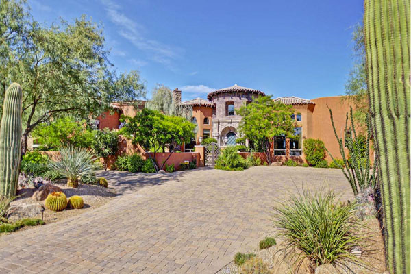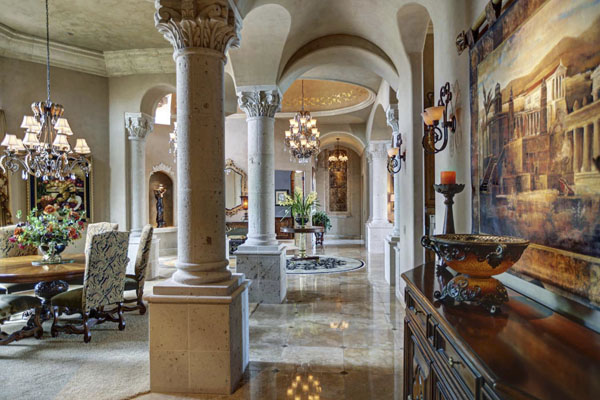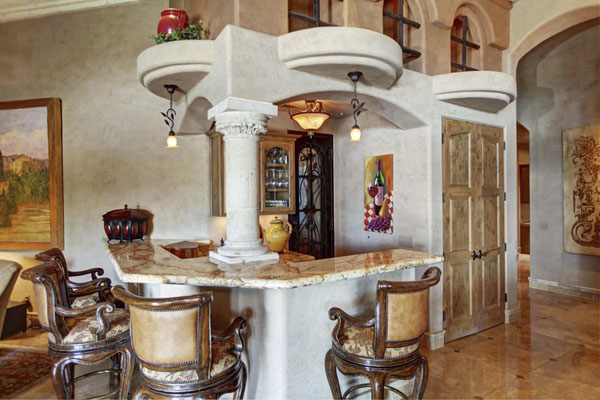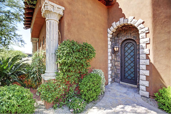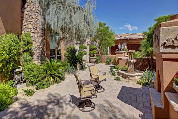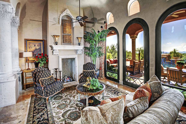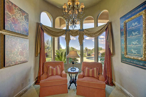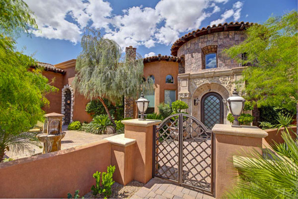 Spectacular Italian inspired old-world SBC Custom Home in Pinnacle Canyon at Troon North. Elegantly situated on the 18th green of the Monument Golf Course at Troon North with fairway, lake, mountain, Pinnacle Peak, and city light views! This gorgeous designer home can be purchased turnkey with the exquisite furnishings and accessories by SBOS. Enter through the arched cantera door to a home loaded with first class appointments: entry with hand painted domed ceiling, private front courtyard, lushly landscaped with fountains front & back, exotic pool/spa area with 2 fireplaces, total of 9 fireplaces – add warmth & charm, cantera accents inside & out, venetian plaster & faux finished walls, polished travertine flooring, view deck, wine room, & guest casita with private entrance.