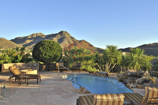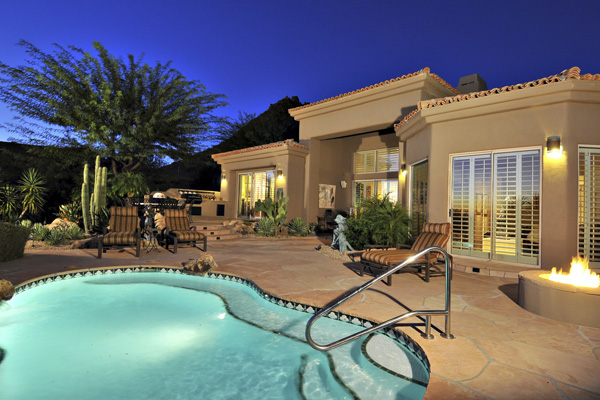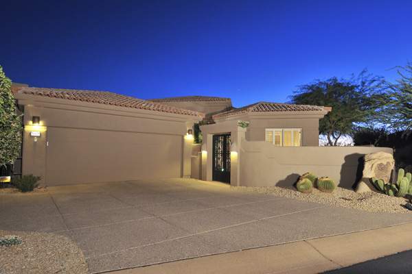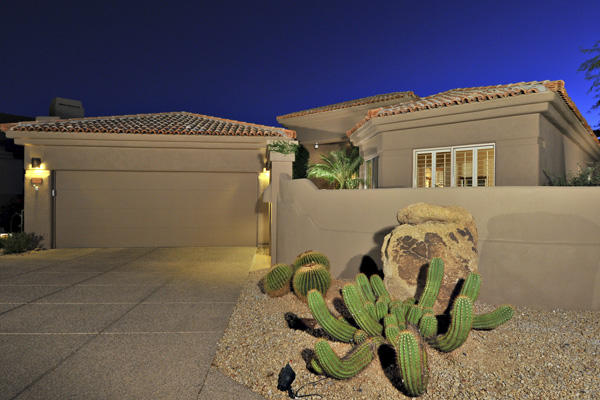 A million dollar view beckons you from the backyard of your villa in a private gated community, Quail Ridge at Troon Village. Twinkling Phoenix city lights and surrounding mountain vistas create this perfect desert oasis. Expanded Edmunds floor plan is perfectly situated on a corner lot at the top of the neighborhood; this property makes you feel like you are on top of the world!