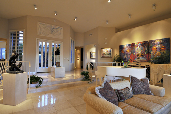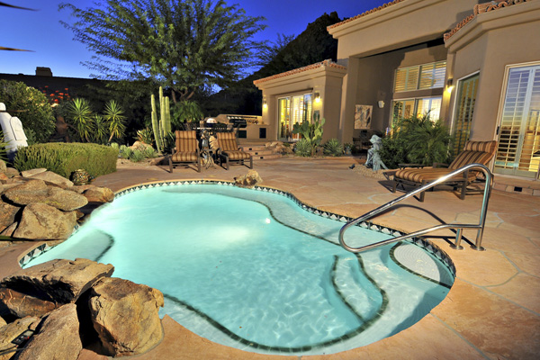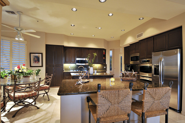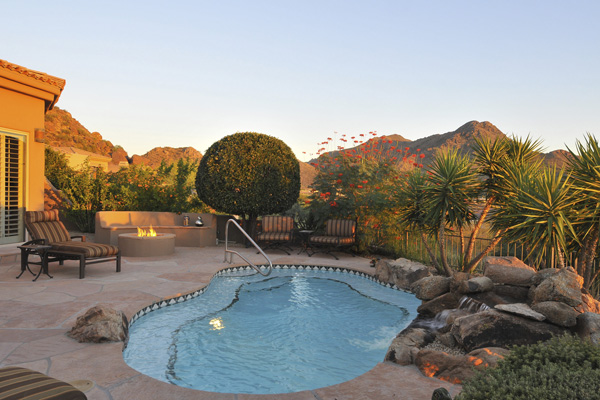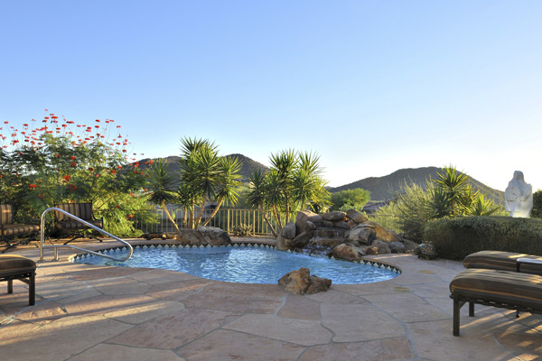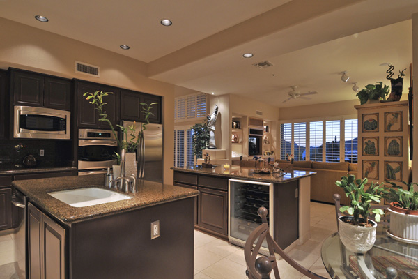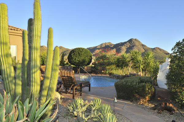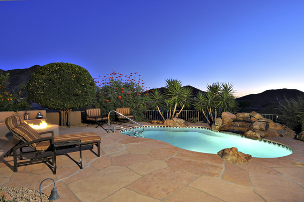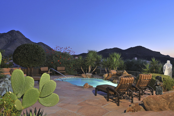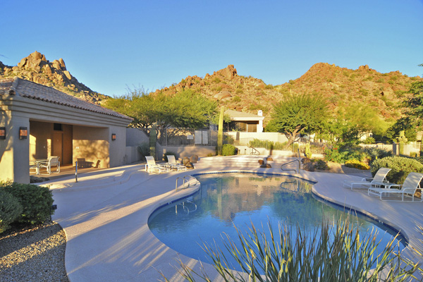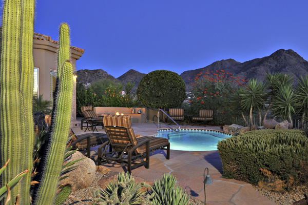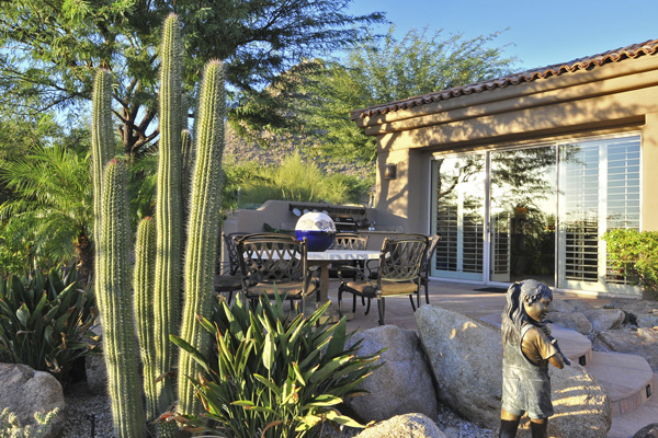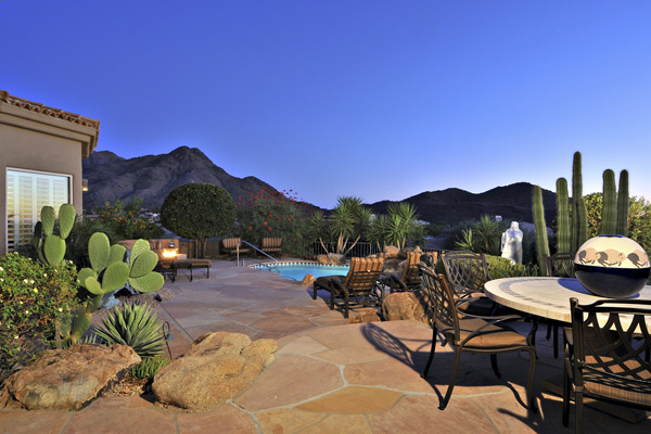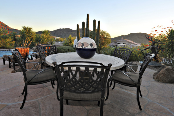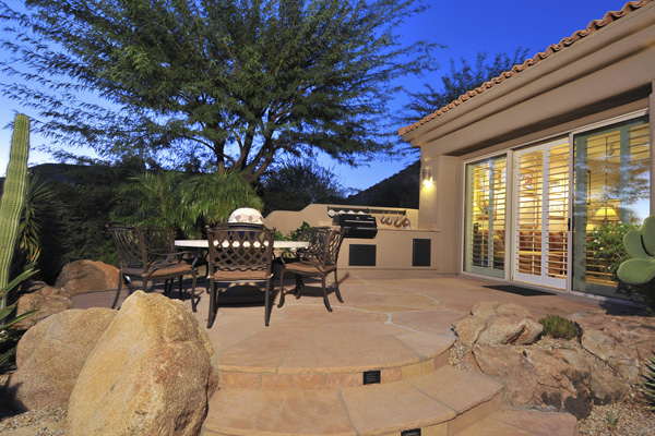 Charming front courtyard with meticulous landscaping has elevated patio seating with Troon Mountain views. One of the nicest backyards you’ll find with ample patio space for entertaining, mosaic tile jetted spool (cross between pool/spa), fire pit, & built-in gas BBQ. Remodeled kitchen with granite countertops, S/S appliances, & 2 islands for prep work & entertaining. Most furnishings & accessories available by SBOS.