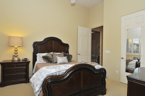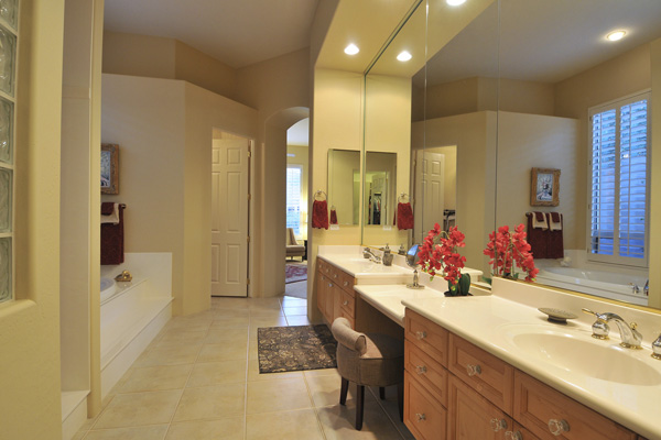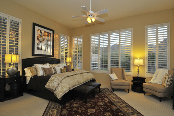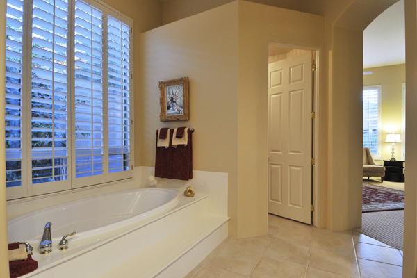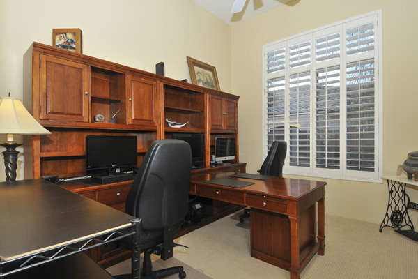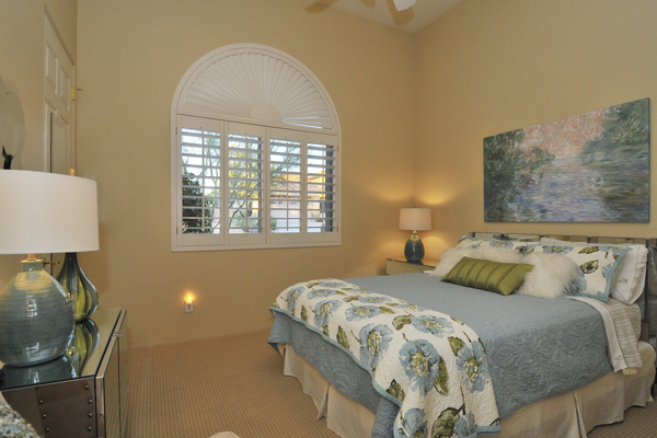 Functional split floor plan with no interior steps featuResMaster suite on one end & 3 guest bedrooms at the other end. Improvements Inside: new hardwood floors, new carpet, full bull-nosed granite counter tops, Thermador S/S appliances, Blanco sinks, refinished cabinets, custom window treatments, shutters, new light fixtures, designer screen doors, & Toto toilets. Outside: flagstone decking, Salt-water Pebble-tec pool with rock waterfall feature, fireplace, grass, & landscape lighting.