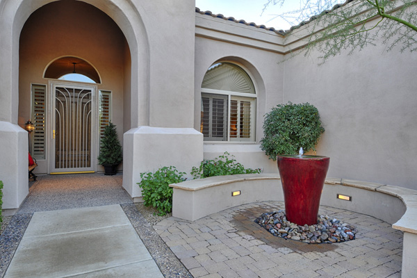This well maintained & remodeled home starts with a beautiful outside patio with banco seating, pavers, & tranquil water feature. Great N/S exposure with sunny south facing backyard & wonderful McDowell Mountian views. Expanded family room with stacked stone fireplace & large wet bar.