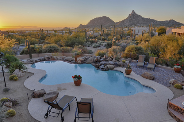 Beautiful home in guard gated Windy Walk at Troon Village has been totally remodeled and it’s stunning! Upon entering the home, the commanding views of Pinnacle Peak will take your breath away. Two-story great room with large viewing windows & wine room. Enjoy endless city light & mountain views from the owner’s retreat featuring separate sitting area, fireplace, & large viewing deck. Two large en-suite guest bedrooms downstairs. Fully remodeled kitchen with every upgrade & amenity you could want. Office with separate entrance is tucked away for added privacy. Spectacular outdoor living with outdoor kitchen, covered seating with cozy fireplace, pots with colorful flowers, pool, & spa.