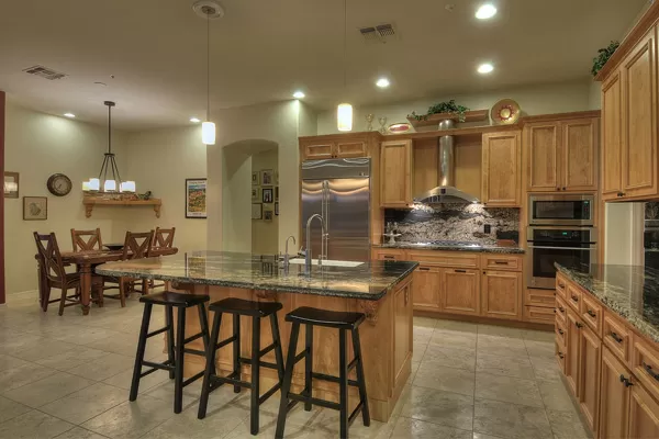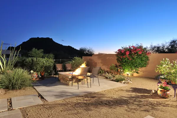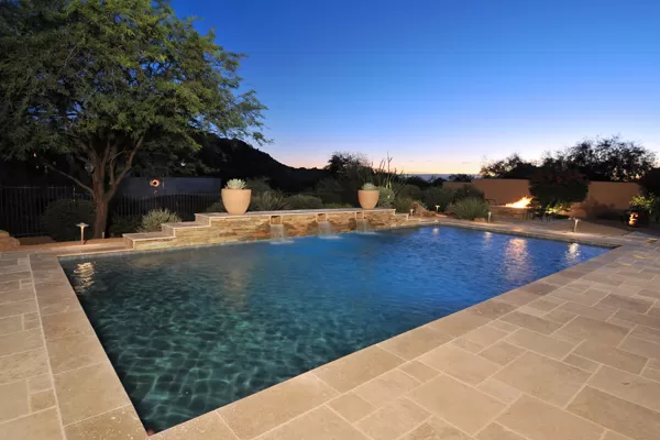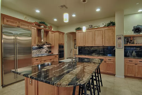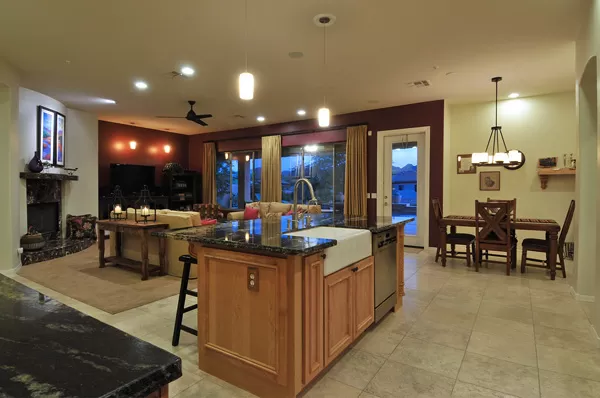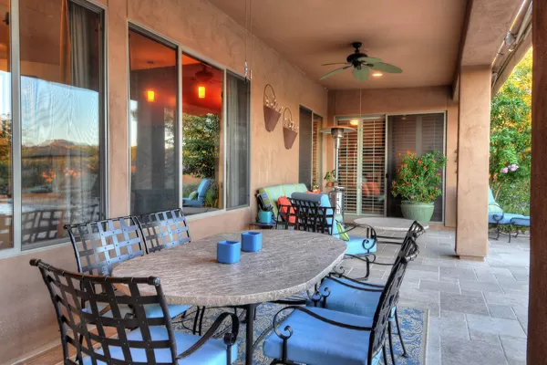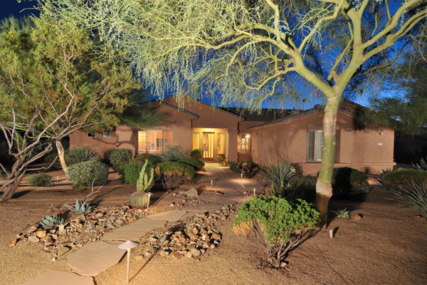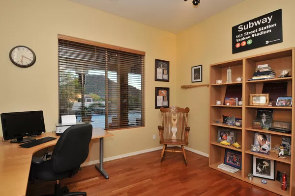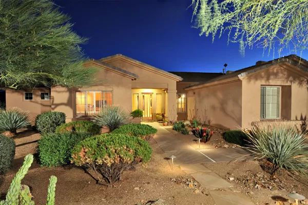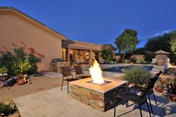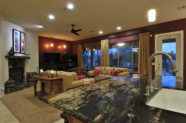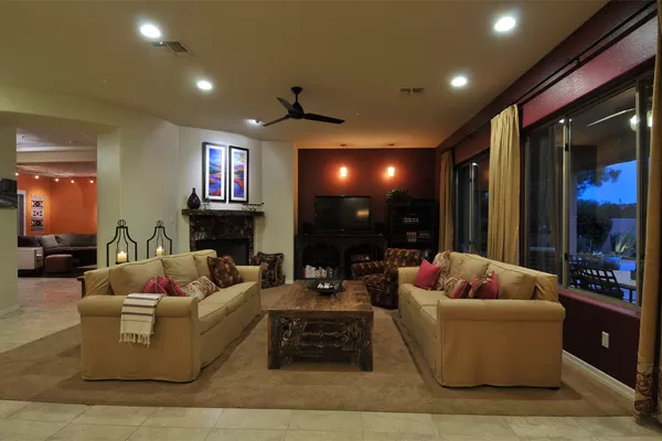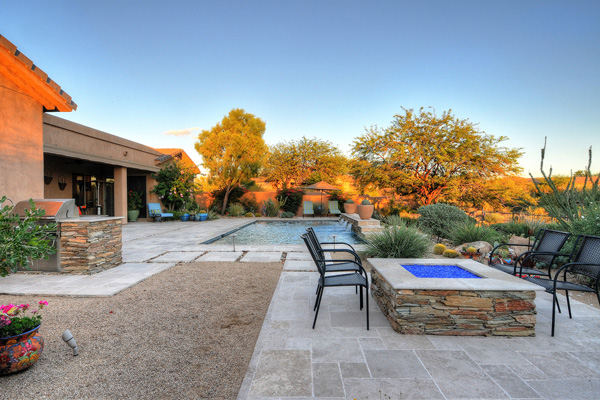 Set in the heart of Troon, this remodeled single level home is spectacular: travertine and wood flooring in living spaces, formal living and dining rooms; updated kitchen with stainless steel appliances including a gas range, dinette area, and island with breakfast bar open to spacious family room with built-in bar area, fireplace with marble surround, and wall of windows framing a breathtaking view of Troon Mountain; split master wing has updated bathroom, walk-in closet, access to patio, and adjacent office; 2 additional bedrooms share a bath with private vanity areas, plus a fourth bedroom with adjacent bath; and no interior steps. The oversized yard is exquisitely designed with a fire pit seating area, covered patio, cooking station, and pool with water featuReswith Troon Mountain as the centerpiece to create an impactful WOW factor.