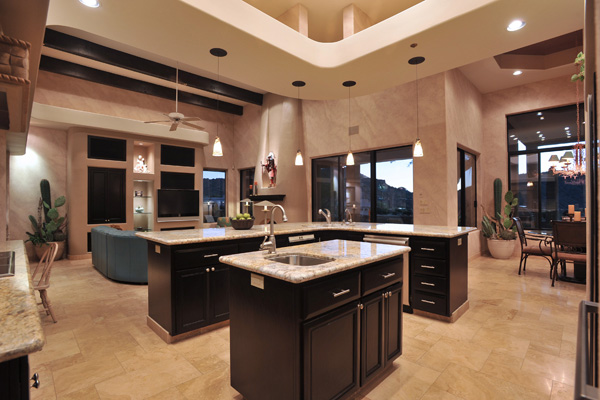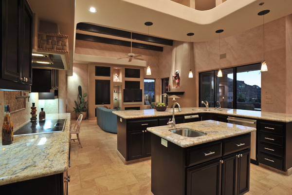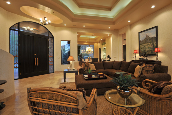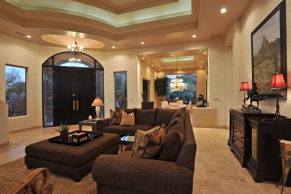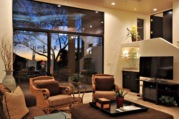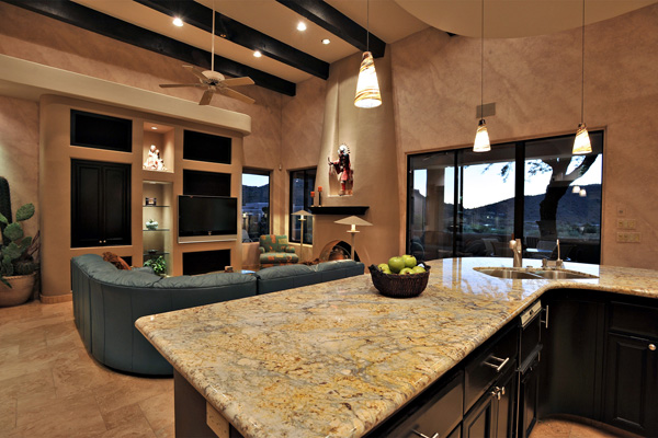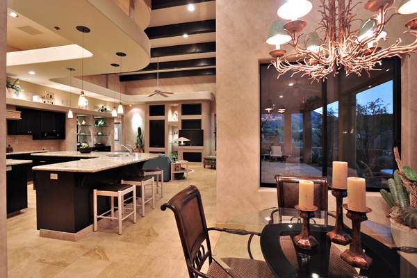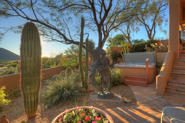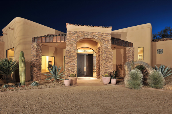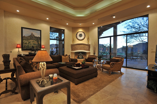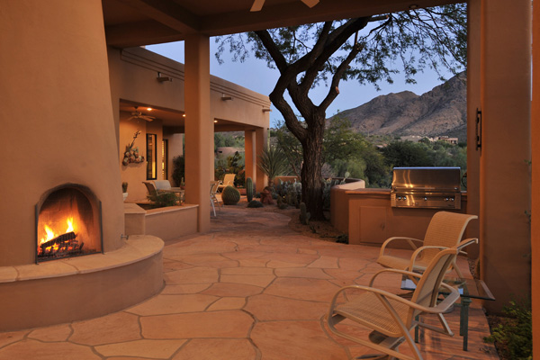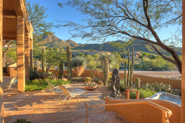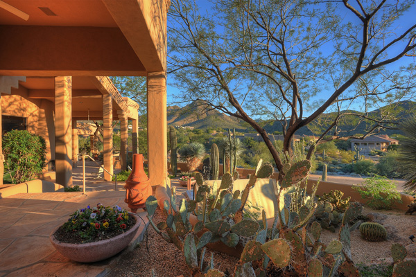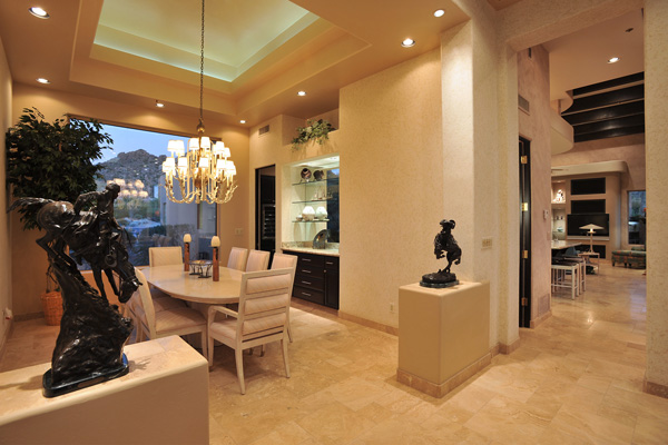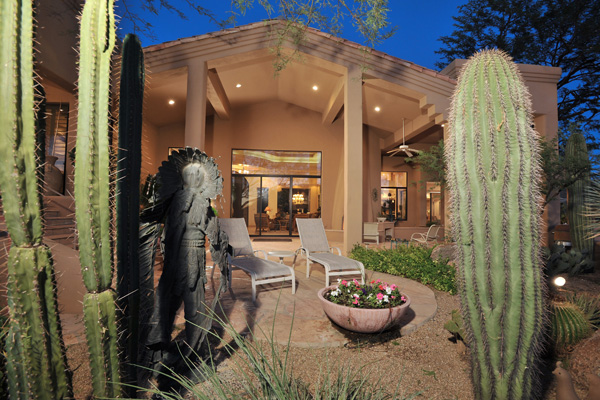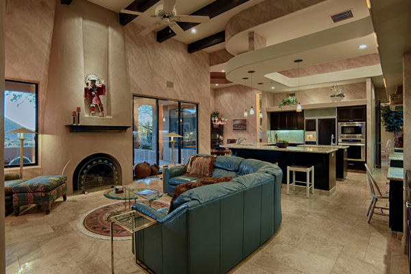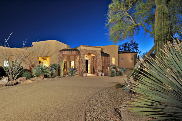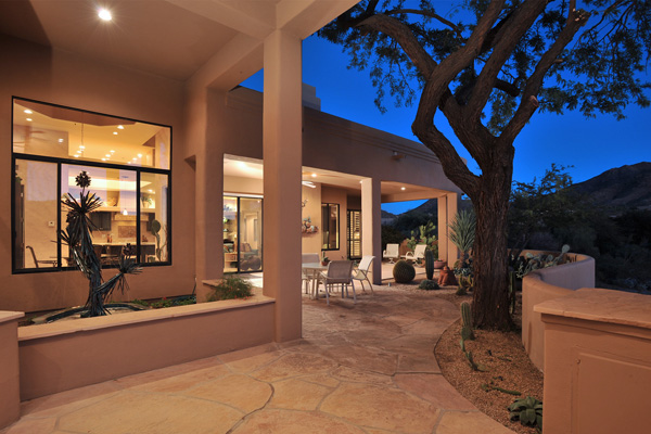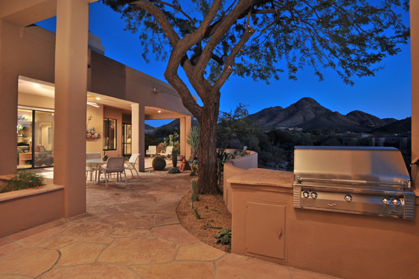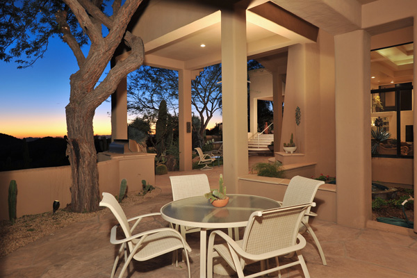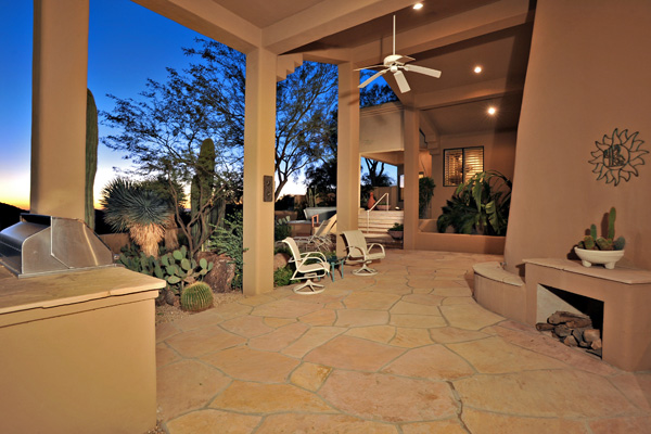 Located in guard gated Glenn Moor at Troon Village, this customhome featuResclean lines and walls of windows to frame up close views of McDowell and Troon Mountain. Living spaces feature high ceilings with coffered and beamed detailing, versaille pattern travertine tile flooring, and multiple fireplaces, all flowing out onto an expansive patio which extends the entire length of the back exterior to create an outdoor living room with exterior fireplace, dining patio, seating patio, spa, and built-in bbq, again, all framing magnificent views. Formal living and dining room; 2011 updated kitchen open to family room; split floor plan with all ensuite bedrooms; deluxe master with sitting room, private patio, and huge walk-in closet. Sophisticated design flexible to many decor styles, this is the property for the buyer who must have a breathtaking view.