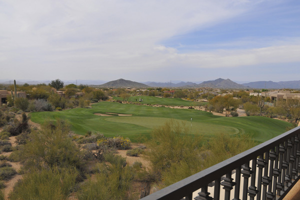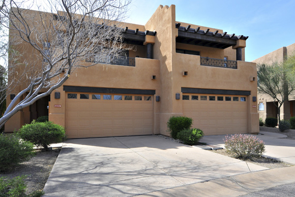 Troon North resort lifestyle townhome offers an affordable way to enjoy the world class shopping, dining, entertainment, golf and other Scottsdale area amenities! Spacious and open Great Room floor plan with high flat ceilings, fireplace, and patio to view the sunsets. Kitchen with granite, maple cabinets, and breakfast bar opens to great room. Upstairs loft area plus two large suites each with private baths and private balconies. Master suite has golf course and Pinnacle Peak views. Mirage on the Green is nestled along the 8th and 9th holes of the Monument golf course within a short walking distance of the premiere Troon North Golf Club clubhouse. Community amenities include a heated pool and spa, BBQ, Ramada area, and fitness room. Bring us an offer!