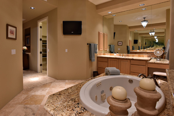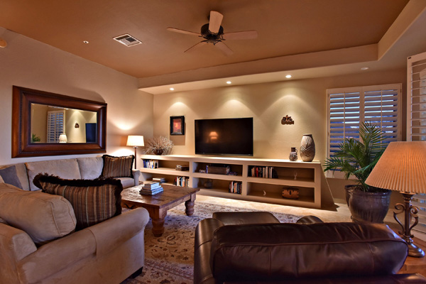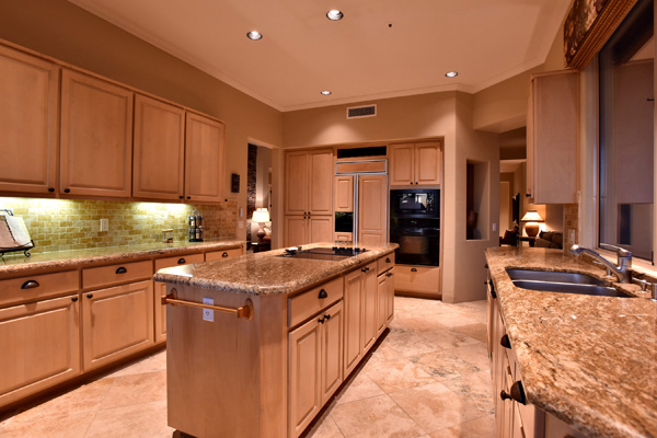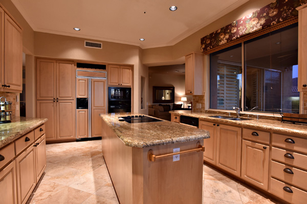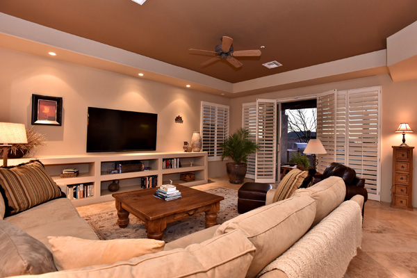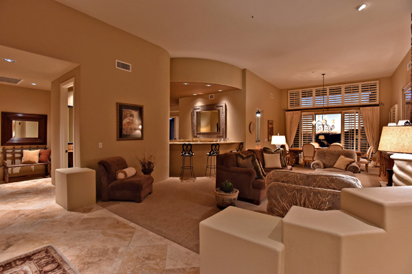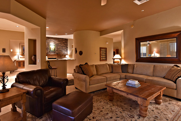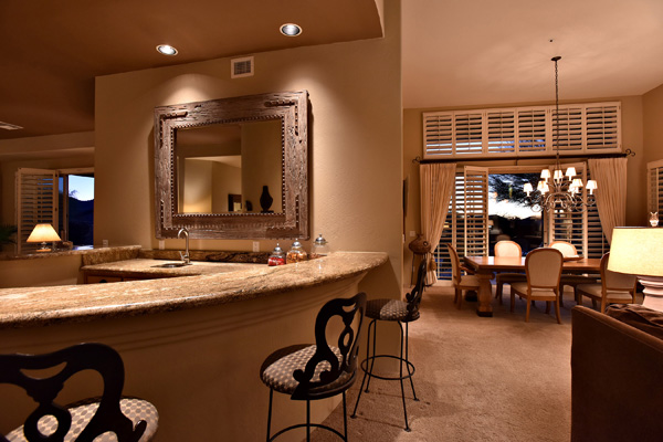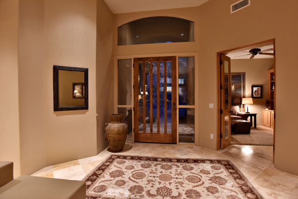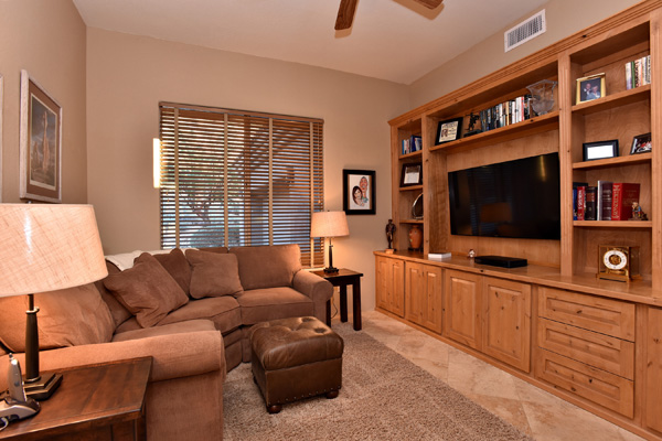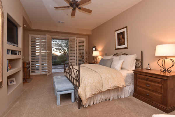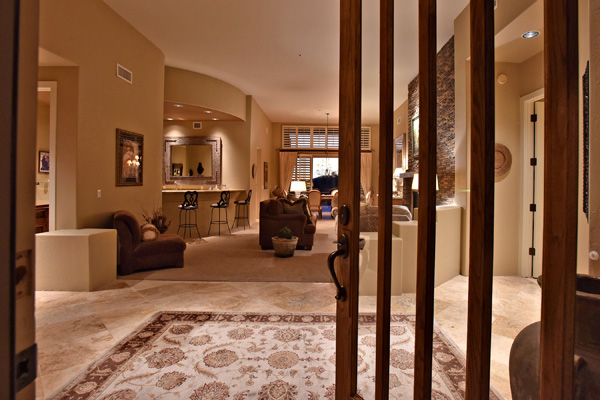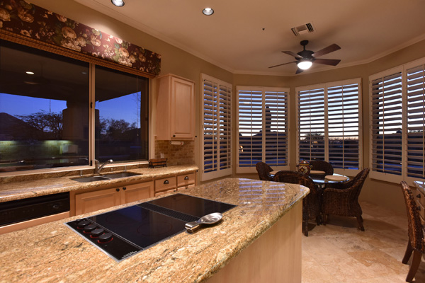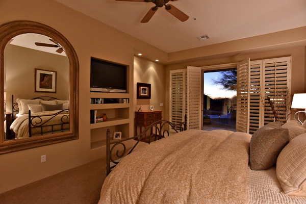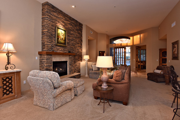 On the summit of gated Quail Ridge, stunning villa style home offers elevated views of Pinnacle Peak, McDowell and Troon Mountain, and valley. Single level floor plan with no interior steps, rare in this neighborhood, provides formal great room adjoined to family/media room by a dual accessed bar area to create seamless living spaces that can only be appreciated in person. Interior highlights include stacked stone fireplace, tumbled stone kitchen backsplash, granite slab counters, travertine baths and flooring, plantation shutters, and high ceilings; deluxe master featuResprivate patio and spa like bath with dual vanities and water closets plus dual walk-in closets; 2 additional bedrooms share jack-n-jill bath; exec office; and guest bath. Outside, carefully thought out living spaces frame exceptional views including adobe style fireplace, pool, spa, cooking station, and covered patio. Natural gas to home.