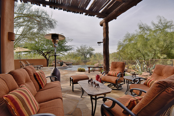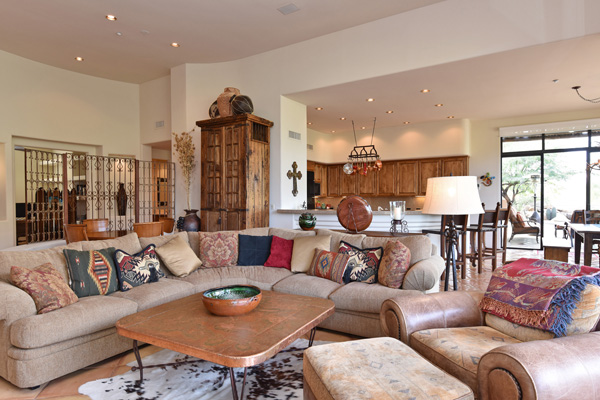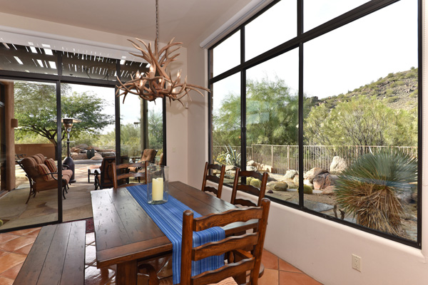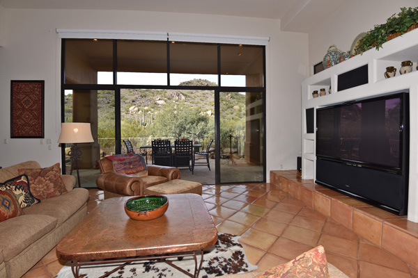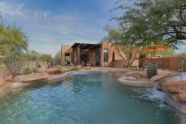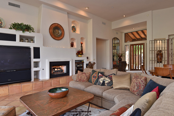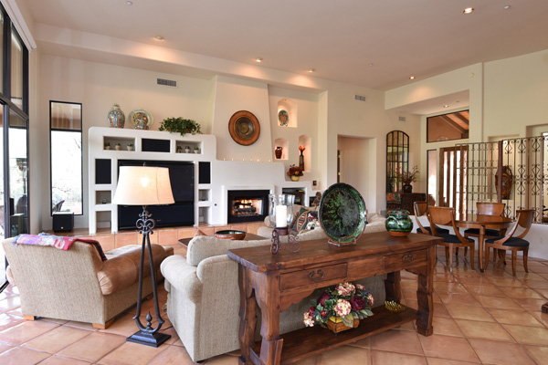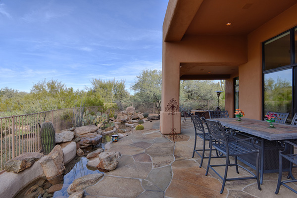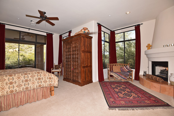 Beginning with a stately setback to maximize privacy, this custom exhibits an updated territorial design and flowing split floor plan. Spacious outdoor living spaces include enclosed entry courtyard plus beautifully designed backyard with wraparound covered flagstone patio and decking, meandering water feature, pool, and landscaping all highlighting a direct view of Lone Mountain. Inside, Saltillo tile flows from entry into the open great room with fireplace, formal dining space, art and entertainment niches to an eat-in gourmet kitchen complete with gas range and dining area. All living spaces feature bright windows framing views and access to outdoor living areas. Master Suite has roomy seating area complete with fireplace. 2 additional bedrooms share an attached jack and jill bath. Additional featuResinclude office, 3 car garage, complete privacy with no immediate neighbors behind. Guard gated community of Sincuidados. Most furnishing available by seperate bill of sale.