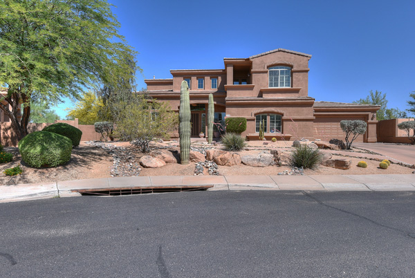 Enjoy traditional living on a cu de sac lot backing to NAOS with this Sonoran Hills Residence. Well maintained 2 Story plan is full of added bonuses: formal dining and living spaces adjoined by the 2 story high entry with sweeping staircase; eat-in kitchen with island open to family room with fireplace; laundry/mudroom; all ensuite bedrooms including main floor guest suite/ office, 2 additional secondary bedrooms upstairs, and a deluxe master with private deck to enjoy sunset and private desert landscape; 3 car garage; low-e glass windows; plantation shutters; new interior carpet; fresh exterior paint; fully landscaped yard professionally designed with mature Saguaro and accent boulders; low HOA dues; premium lot backing to NAOS with no immediate neighbor backing to house for privacy; prime location walking distance to neighborhood park and school plus short drive to the best of North Scottsdale shopping, dining, hiking, and golf. This house is ready to be made into your home!