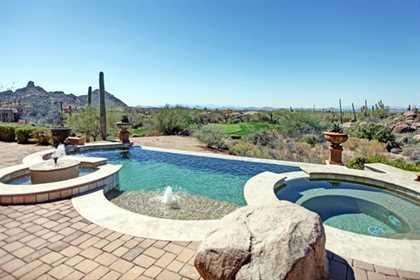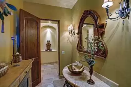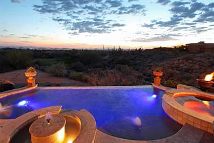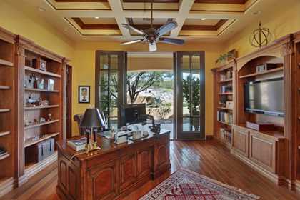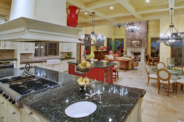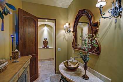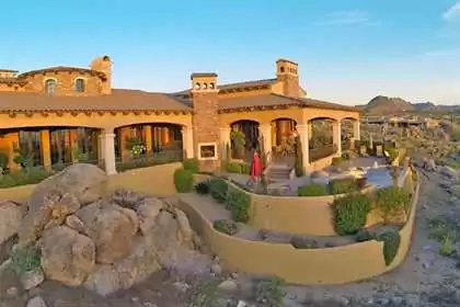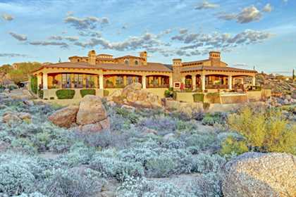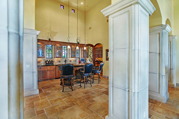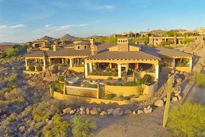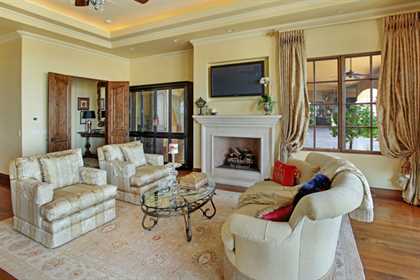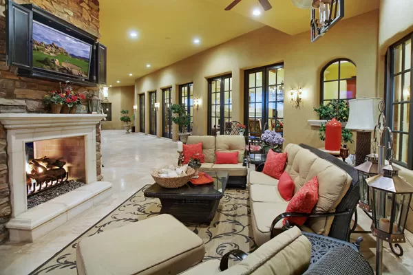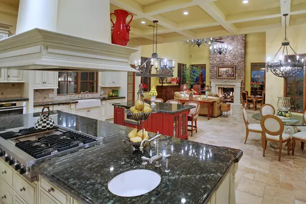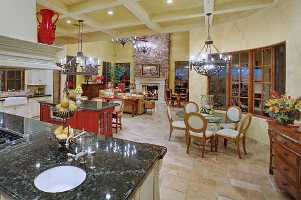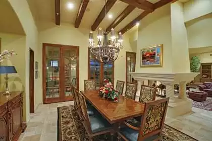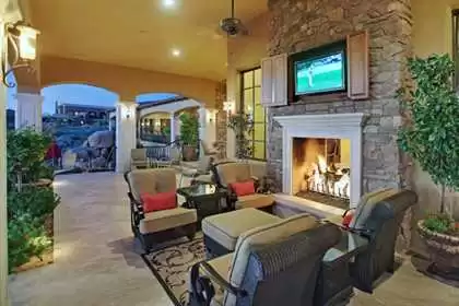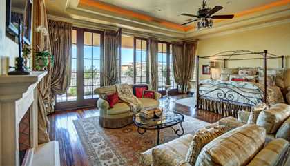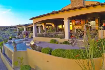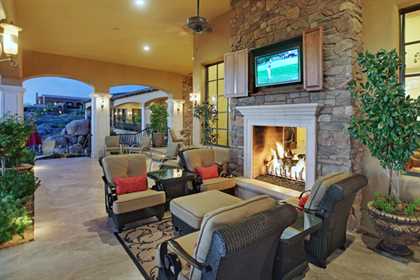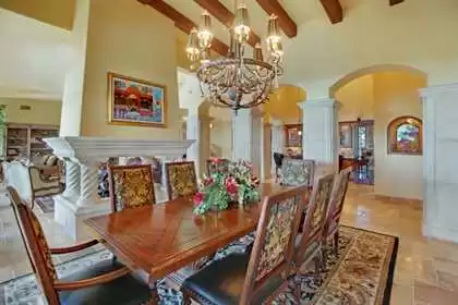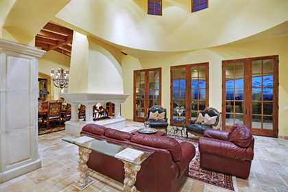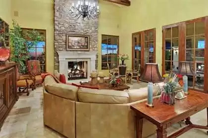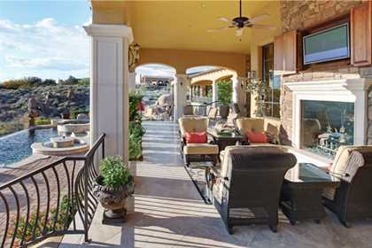 A dream residence in the gated community of Talus begins with an exquisite setting overlooking the 3rd green of Monument Golf Course and offers unparalleled views of mountains and city lights from the inside to out. Dramatically anchored with a 4-way exposed Cantera stoned fireplace, the formal living and dining spaces feature wall of French doors framing the views and providing seamless indoor/outdoor living for small and large gatherings. A TRUEgourmet kitchen will delight with the Viking, Meile, and Dacor appliance package as well as a thoughtful layout with multiple prep stations including 2 islands-one of which has an exhibition cooking design showcasing a gas range with floating hood and the other with a breakfast bar. A bayed dining nook completes this space which flows to the family room with a 2 story stone fireplace. The master suite exudes exquisite warmth with wood plank floors, gas fireplace, ensuite refreshment bar, and a wall of French doors leading to the outdoor patio. The bath suite comprised of refined granite and marble compliments the bedroom area. Each of the additional 4 sleeping quarters feature their own bath and access to patios to enjoy views. Interior highlights: earthstone pizza oven, tumbled travertine and wood plank flooring; cantera and stacked stone accents, wood beamed and coffered ceiling detail; full bar area with temperature controlled wine room; custom ironwork lighting fixtures; Executive office; and oversized laundry room with pet wash station. While the interior is the very definition of tasteful luxury, the exterior living space is what makes the home unrivalled: sweeping verandah patio with multiple seating and dining areas, multiple exterior stacked stone fireplaces including a dual sided version looking out onto the pool, a complete outdoor kitchen with grille and rotisserie oven; paver decking; heated negative edge pool with sun shelf, water features, and adjacent spa; and all framing views that are exclusive to this property. The 1.36 acre lot provides a setback and privacy buffer demanded of a property of this caliber while the home’s orientation ensuResyear round enjoyment of the south facing yard. View the video production for aerial footage flying over the 3rd green of Monument Golf Course!