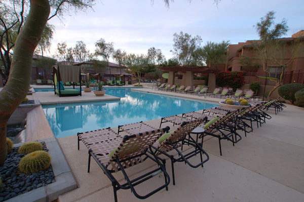 Wonderful lock and leave unit in The Venu at Grayhawk provides privacy with no building directly next to you. Views! Balcony faces towards natural area open space. 3 bedroom, 2 bath, 1 car garage (unit 80), and 1 parking space. Living and dining room open to the kitchen providing a nice open floor plan. Fireplace for cozy, cool winter evenings and covered patio for outdoor enjoyment during the fabulous weather season. All appliances are included. Community services include Concierge service, private chef for special dinners, reserve the media room for a private movie showing, activities and more. Relaxing social atmosphere and fantastic 4 pools to enjoy all year round. Perfect home for resort style living!