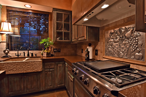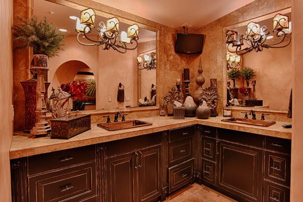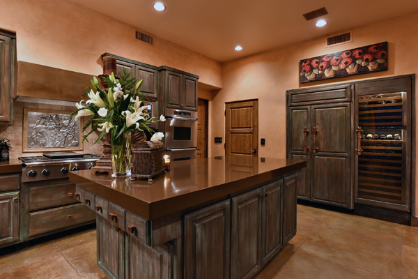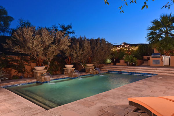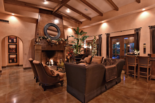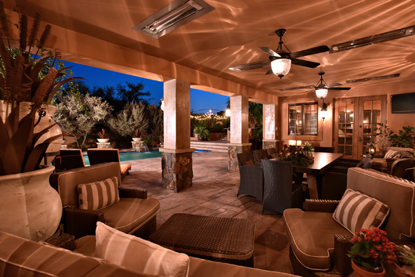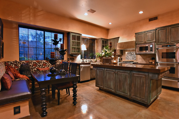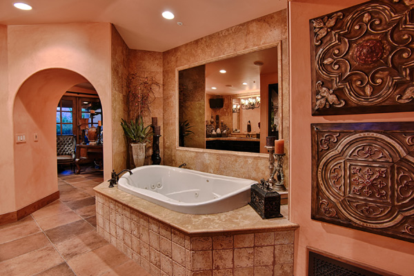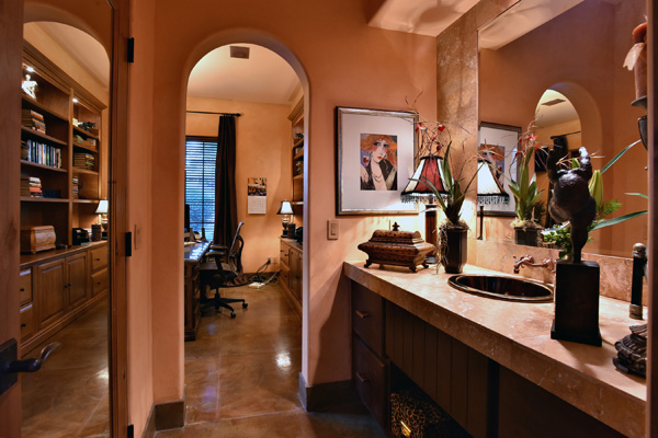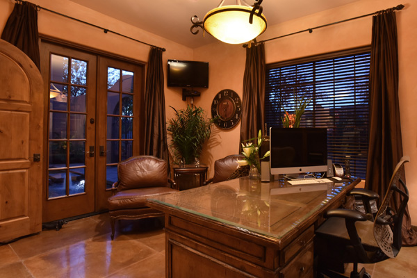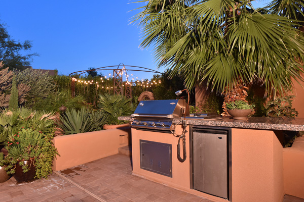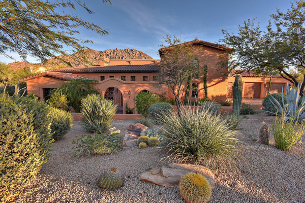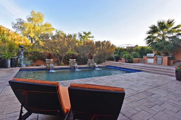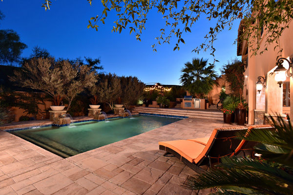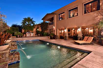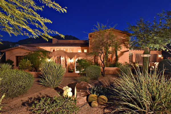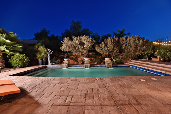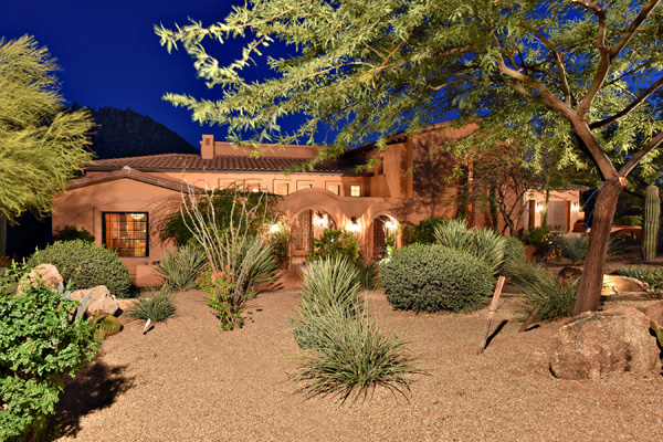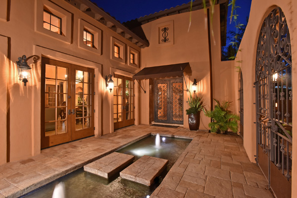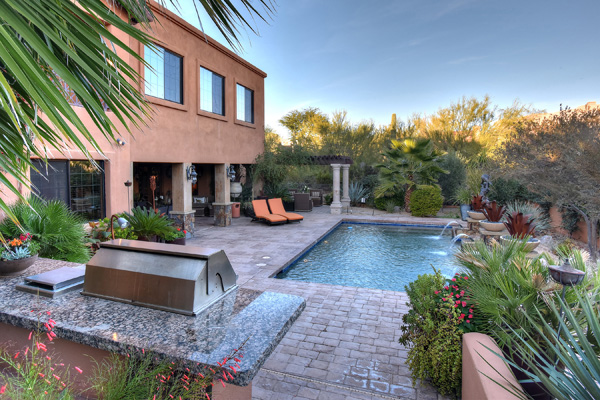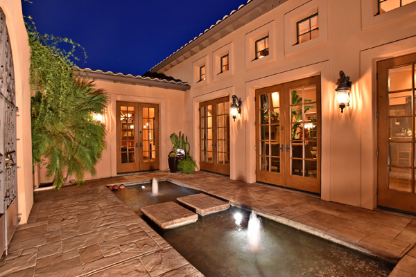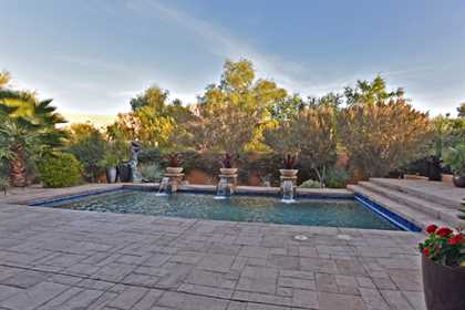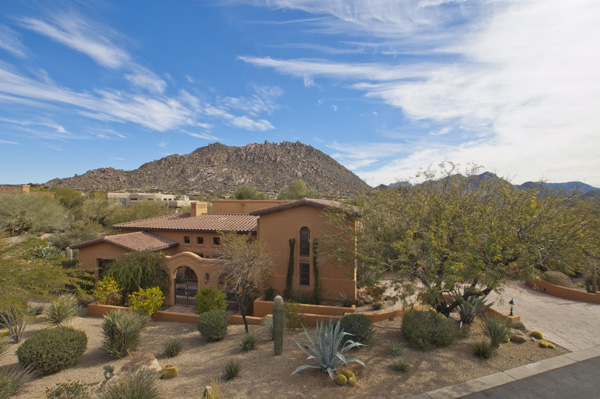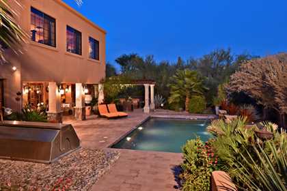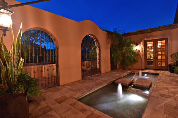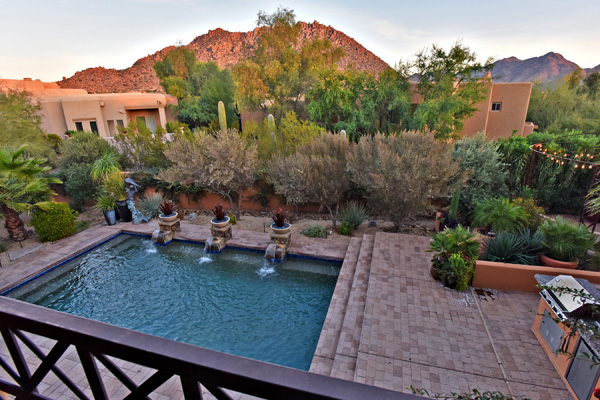 In the heart of Troon Fairways a TRUEcustom reminiscent of an Italian Chateau offering tasteful refinement in detailing; custom ironworks; courtyard with reflection pool; stone bathrooms; designer cabinetry; great room with oversized fireplace/beamed ceiling; SS appliances include gas range, full size dual temp wine fridge, eat-in kitchen banquette, stone farm sink, 2 bedrooms, media/office main floor & master with fitness room up; stained concrete throughout; backyard privacy surrounded by botanical gardens; pool with multiple water features; covered patio with built-in heaters; pergola with fire pit; iron gazebo area; 2nd level viewing deck. A taste of Italy in the desert framing Troon Mountain that will be sure to impress.