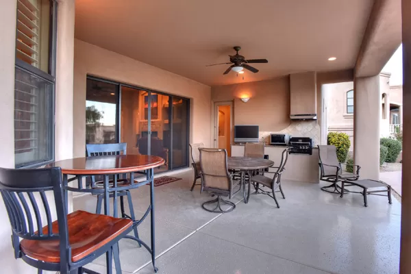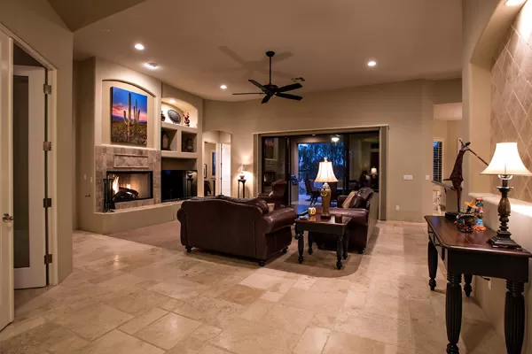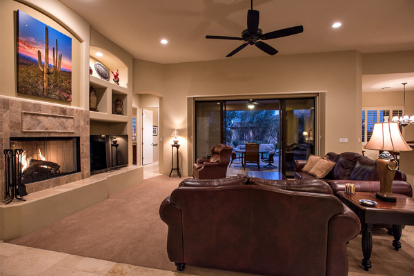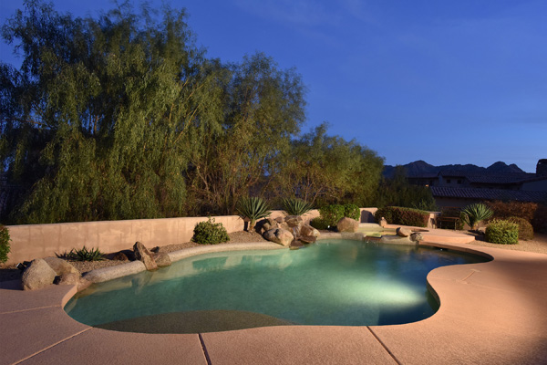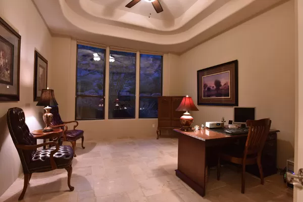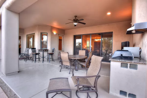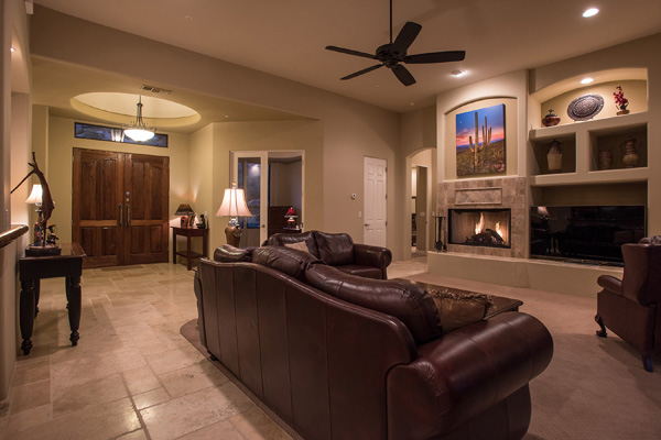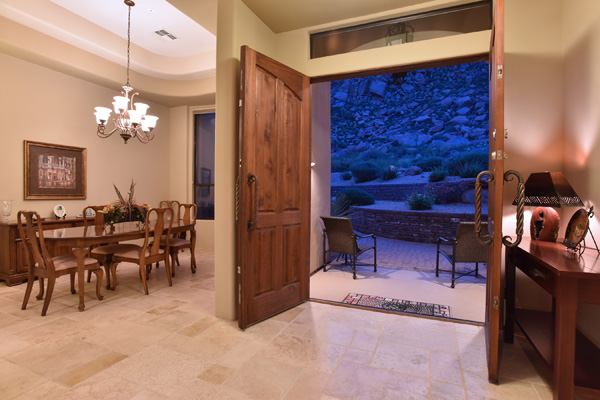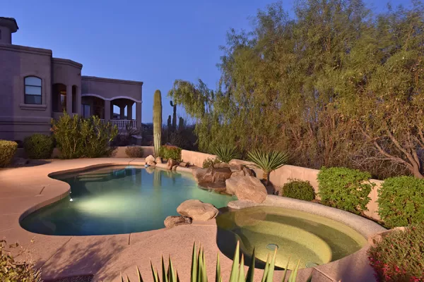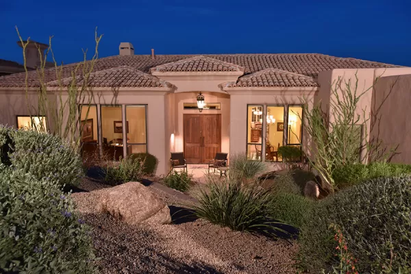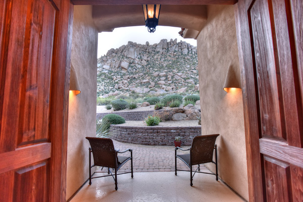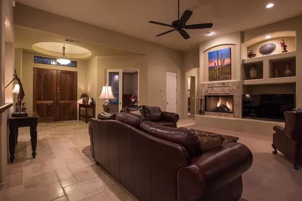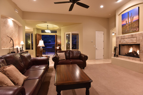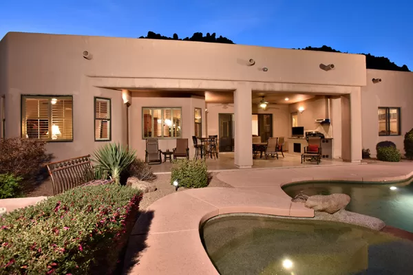 This Troon residence offers the best of indoor/outdoor living for which Scottsdale is renowned. Open floor plan expands to the outdoors with retractable doors to the expansive covered patio complete with media and cooking station plus room for both dining and seating. Backyard also includes heated pebble tec pool and spa, landscape, and view corridors of the McDowell Mtns. Inside, the open kitchen/ family room provides a gathering space w/ media center, fireplace, breakfast nook, upgraded appliances including gas range, alder cabinets, and granite slab counters plus an adjacent formal dining room. Master Suite has its own fireplace and seating area, plus travertine finished bath. There are 3 additional bedrooms plus an office. Additional featuResinclude travertine tile flooring and baths, neutral carpet, high ceilings, dramatic views of Troon framed from the front of home; private cul-de sac location; and guard gated community.