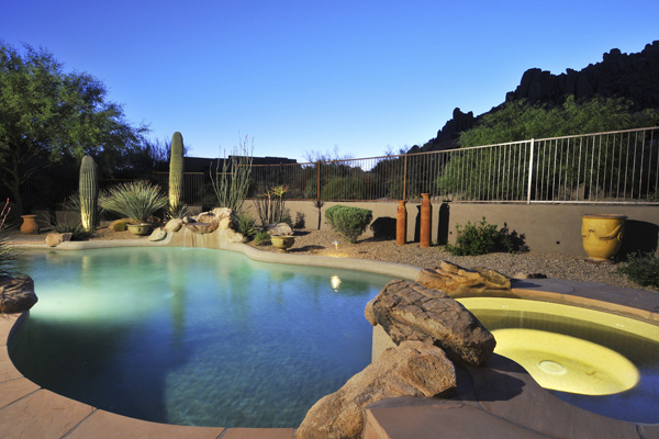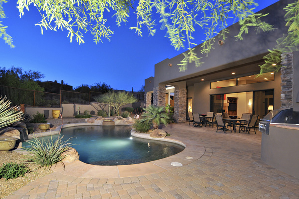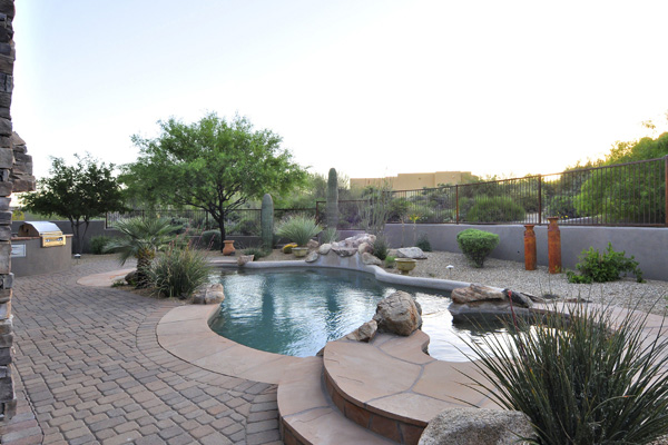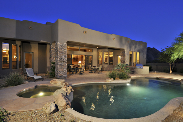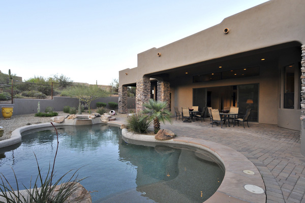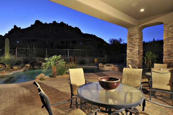 Fabulous Troon Mountain and McDowell Mountain setting with 360 degree views in all directions. Simmons custom home includes lot behind to protect your views and privacy. TRUEGreat Room floor plan has 14′ ceilings, fireplace, bar stool seating with pass through to Kitchen, and opens to adjoining room with pool table. Large Kitchen opens to a very large breakfast room/dining area with fireplace and wet bar. Plenty of room for family and friends with 5 bedrooms all with private bathrooms. The outdoor space couldn’t be more inviting with beautiful heated Pebble-Tec pool, spa, BBQ, and brick pavers. Home featuRes3 fireplaces, front courtyard with fountain, granite counter tops, S/S appliances, and travertine floors. Home is on lot 10 and lot 11 behind the home is included in the price. Watch the Community Video.