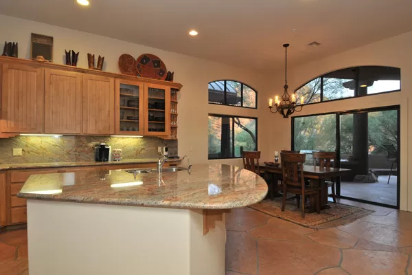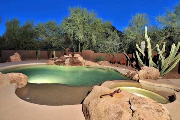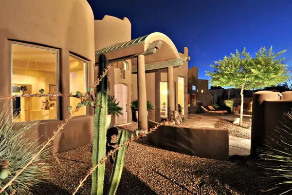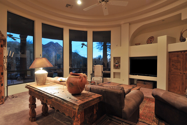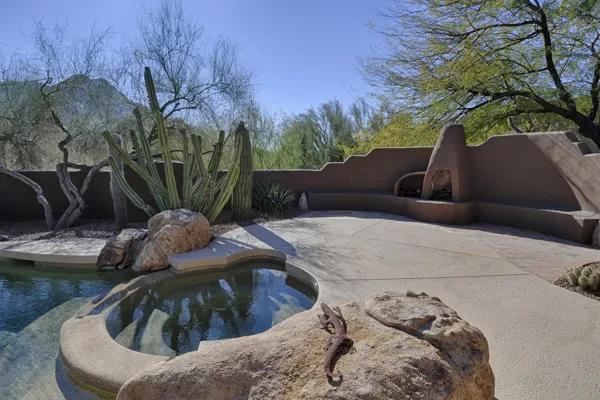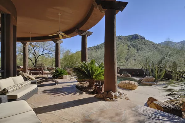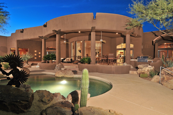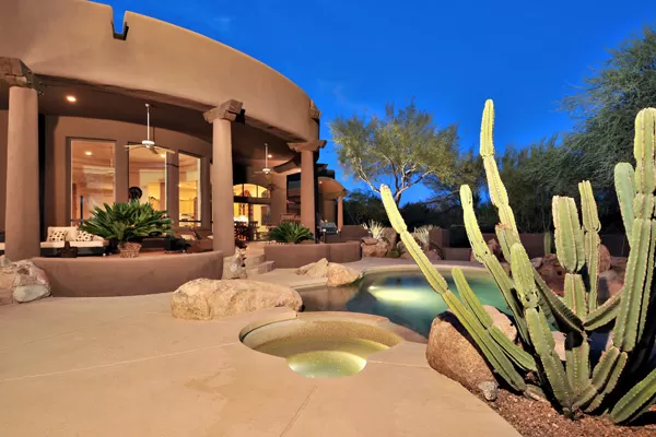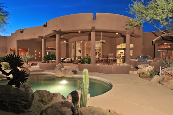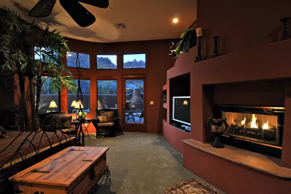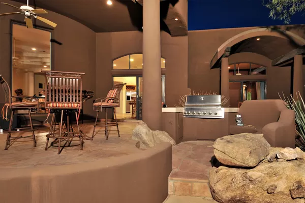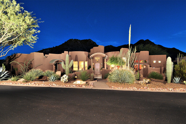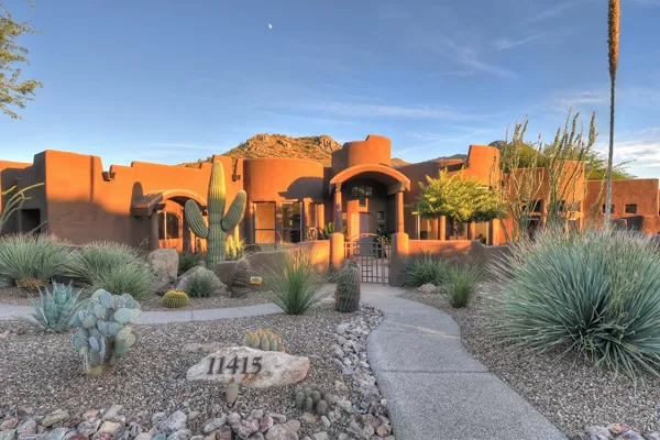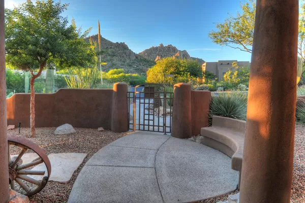 Great Southwest home in gated Troon Ridge Estates II has a warm Arizona feel. Arrive through the front courtyard gates to an inviting patio with outdoor fireplace. As you enter the home your eyes will be drawn to the beautiful McDowell Mountain views out the large great room windows. This single level home is just the right size with 3,720 sf featuring 3 bedrooms, office, 2.5 baths. Nicely appointed Kitchen has slab granite countertops and S/S appliances. Owner’s retreat with 2-way fireplace has Troon Mountain views out the front & the McDowell Mountain views out the back. Backyard has all the amenities you’re looking for: pool, spa, BBQ, fireplace, & large covered patio for outdoor entertaining. A charming Scottsdale home with large saguaros, vega beams, & latillas.