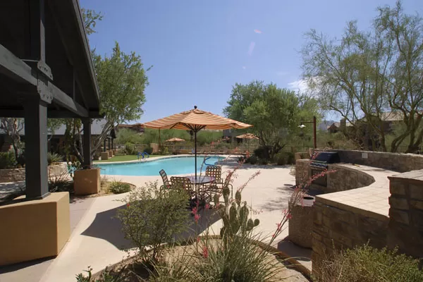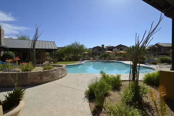 Wonderful lock & leave 2014 remodeled condo at DC Ranch Village at Market Street! The walls have been removed in the remodeled kitchen creating a floorplan open to the great room. Kitchen featuResgranite countertops, stainless steel appliances, bar seating, & new cabinetry. The former laundry room and storage area has been expanded to create a small room – could be an office, extra bedroom, storage – you decide. This unit has a detached oversized garage plus an assigned covered parking spot. Located just down the street from the Market Street Retail Center with all it’s fine dining & shopping. You will also enjoy all the amenities of the 2 DC Ranch community centers: heated lab pool, spa, basketball & tennis courts, playground, work out facility, grassy areas, and miles of walking trails.
